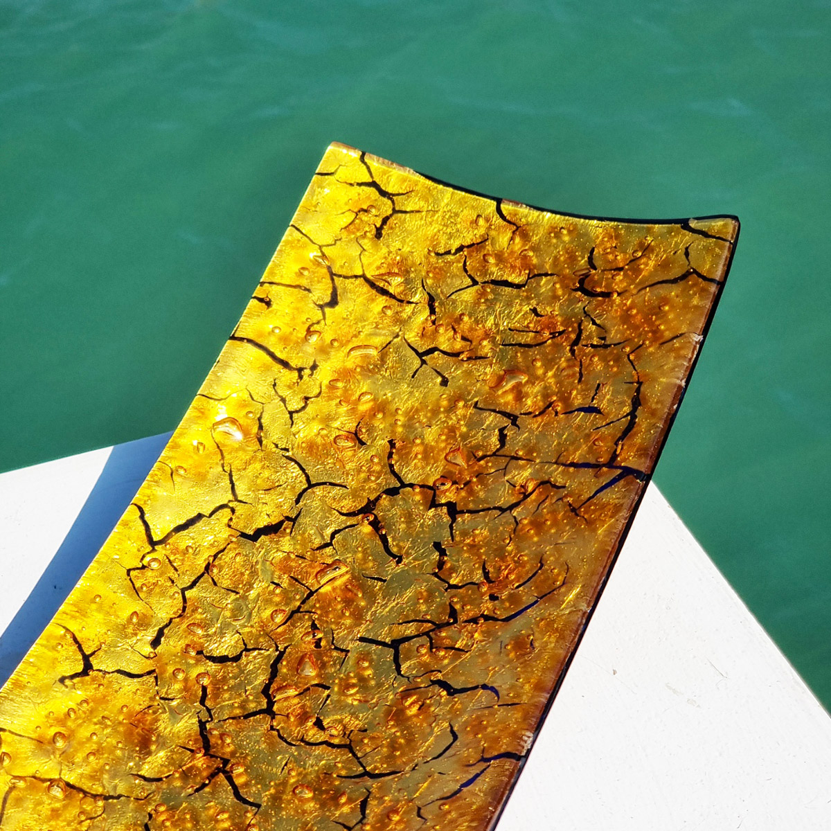 Plate Rectangular Yellow Amber & Gold - Murano Glass