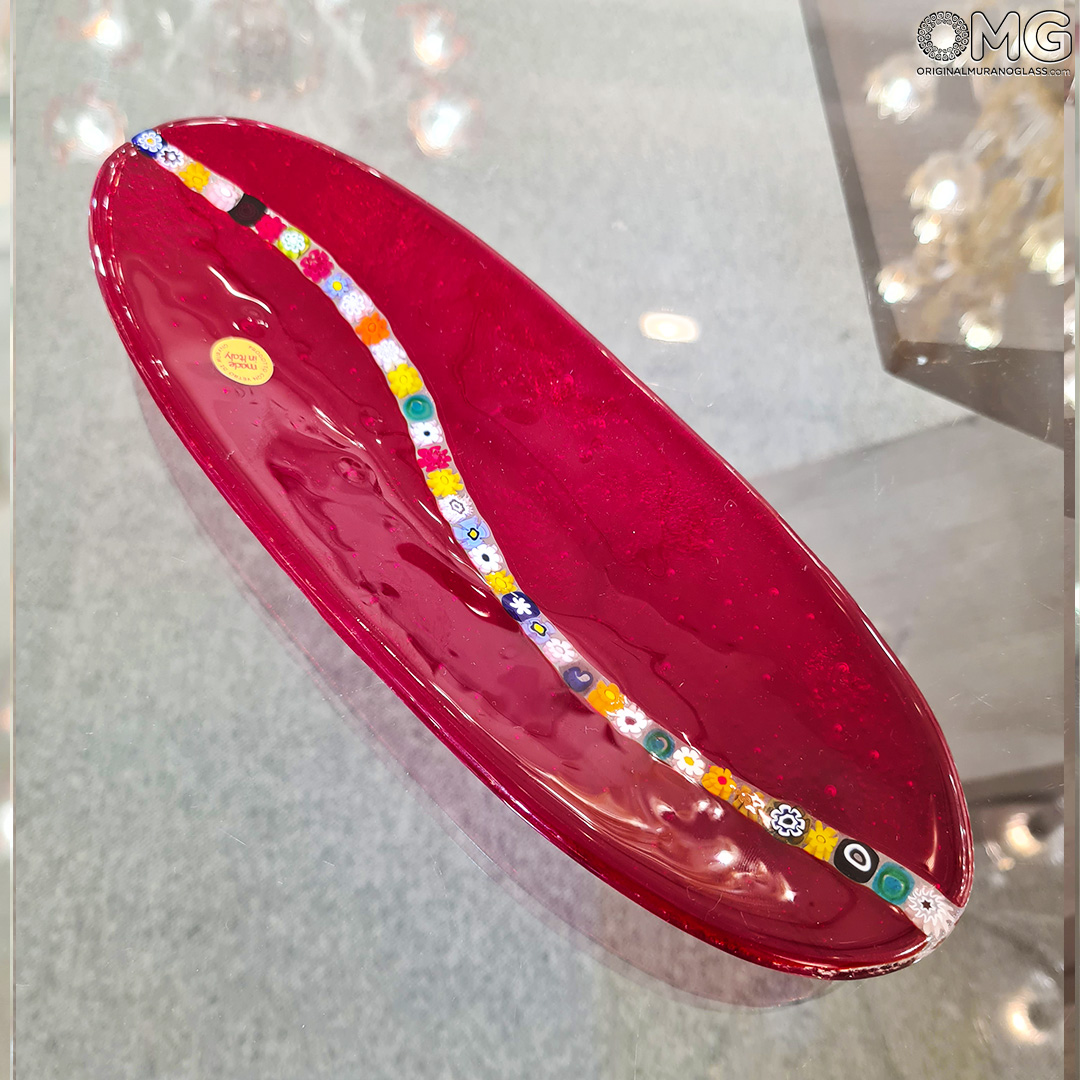 Plato Millefiori rojo - Vidrio de Murano original