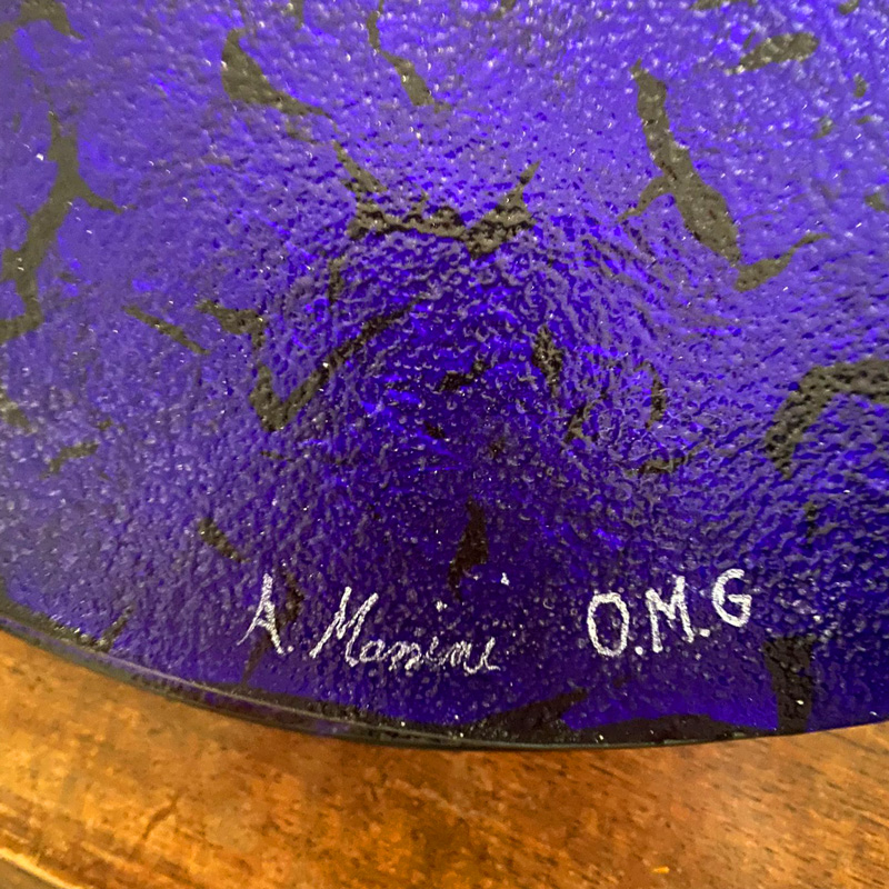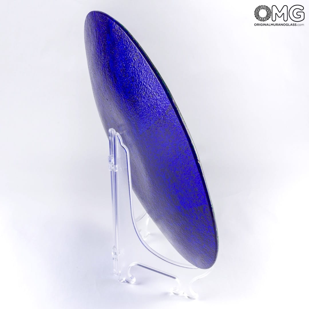 Blue and gold 24carats plate handmade with the traditional tecnique of glass fusing. Original Murano Glass dish centerpiece for luxury home decor. Very nice as fruits holder. The artwork is signed by the glass master.