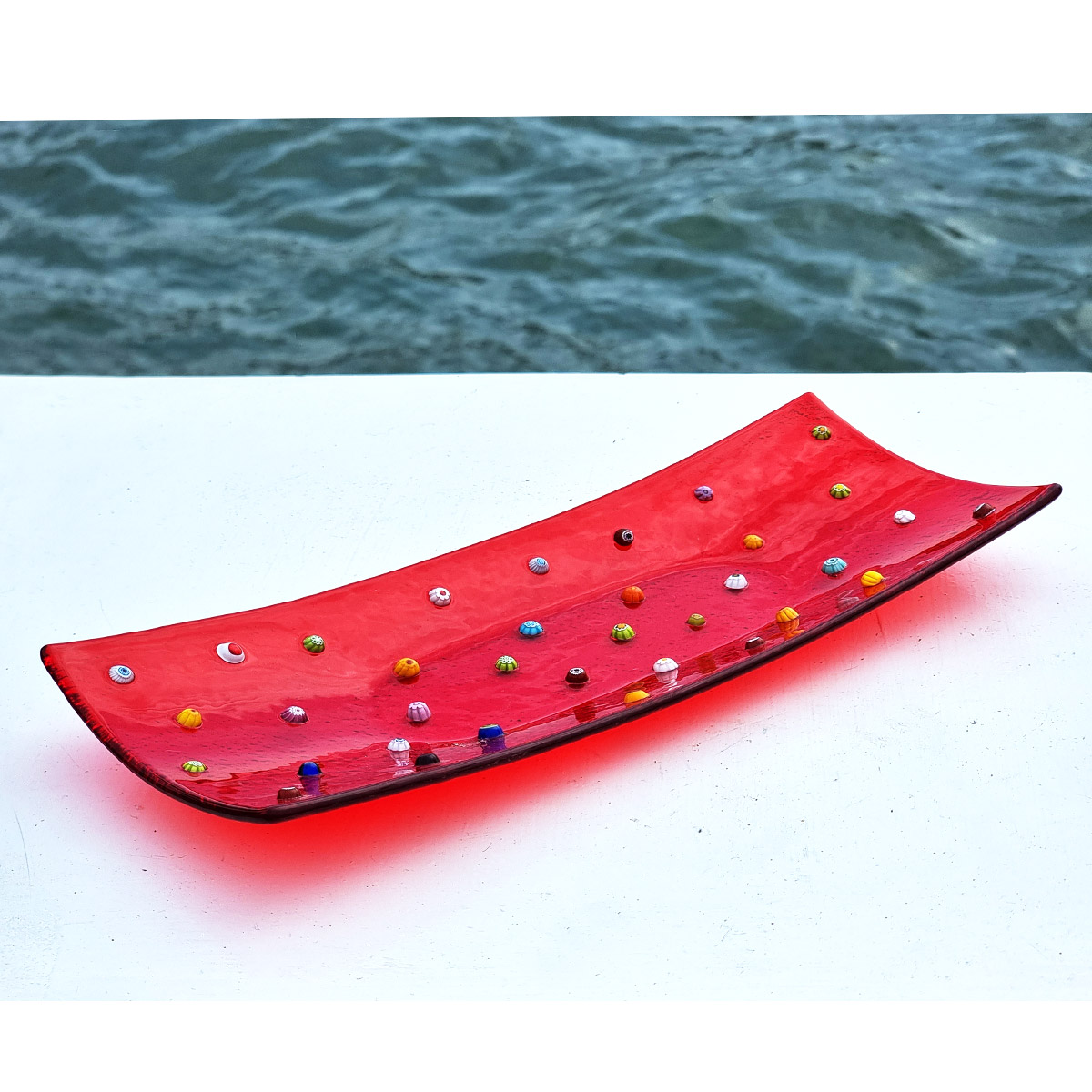 Plato rectangular Fly - Bolsillos vacíos - Rojo Millefiori - Cristal de Murano