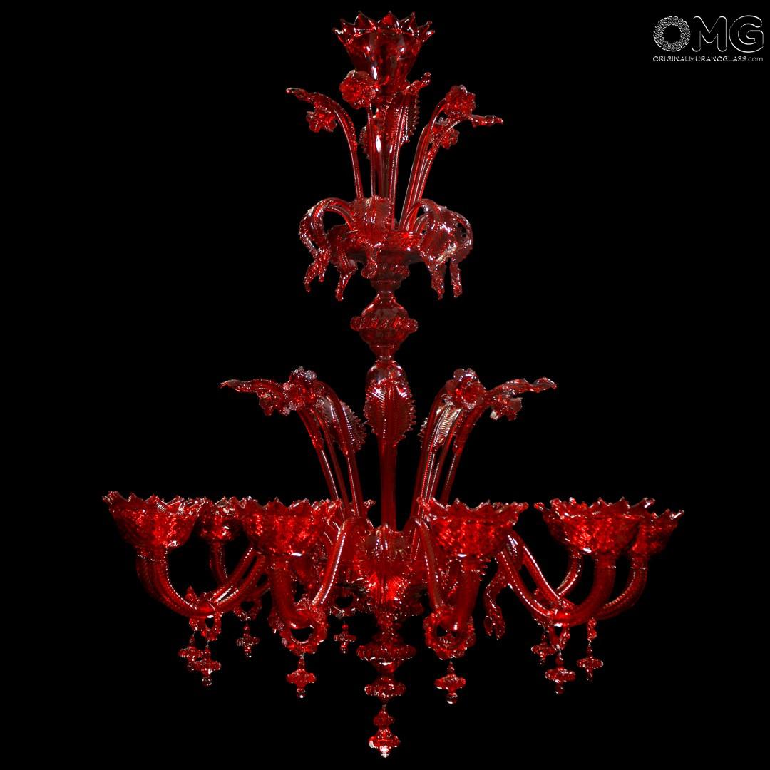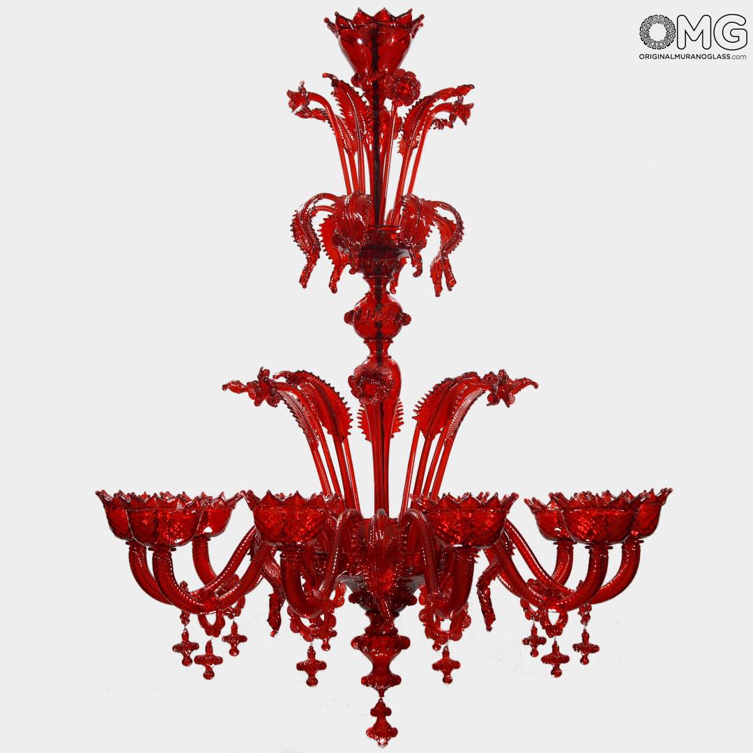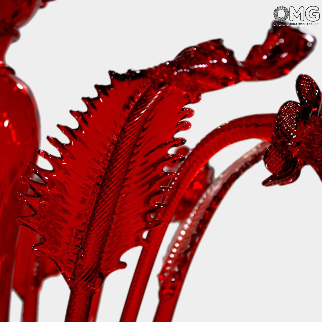 Chandelier with red crest Glass Venetian.