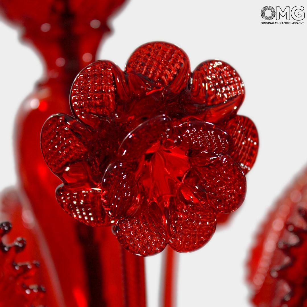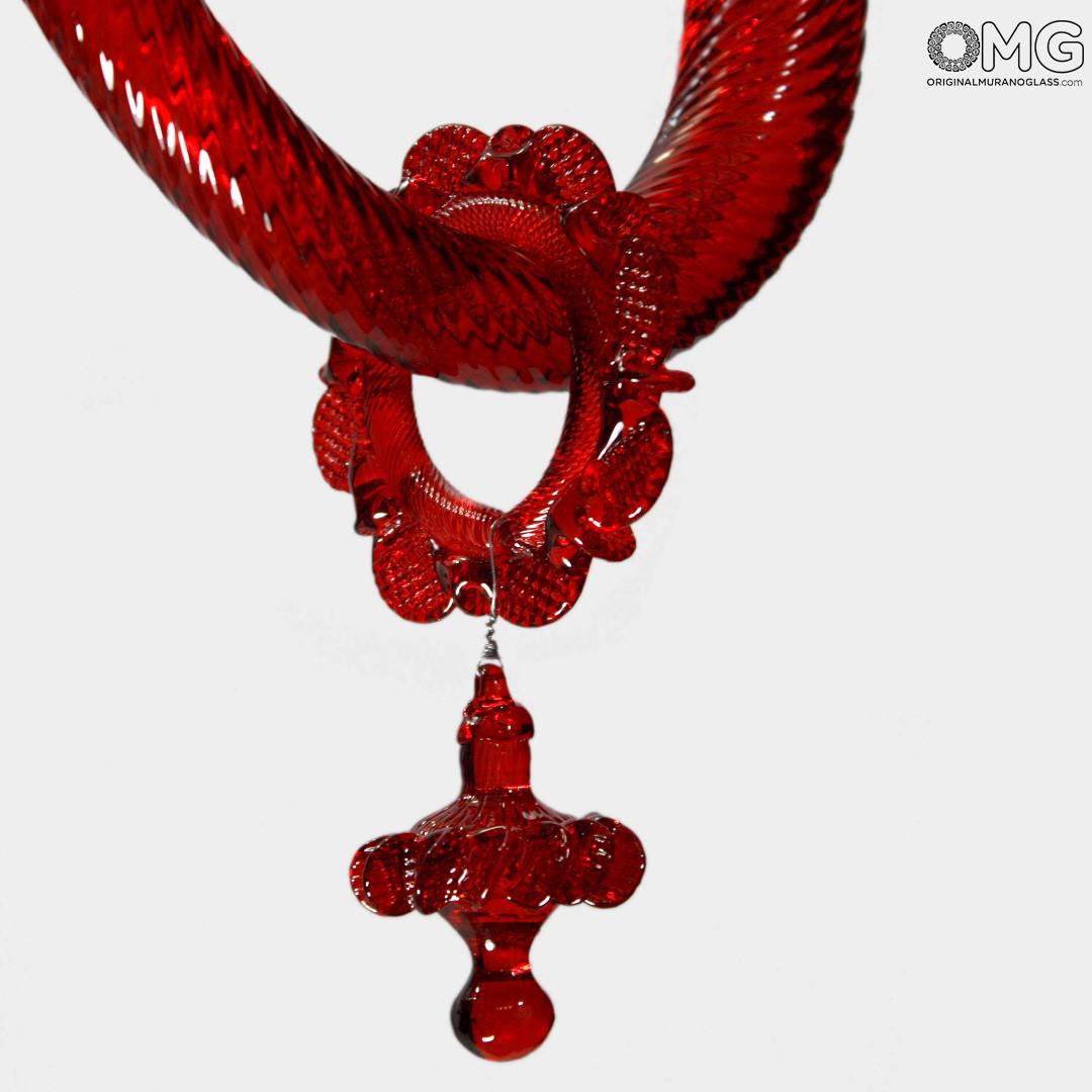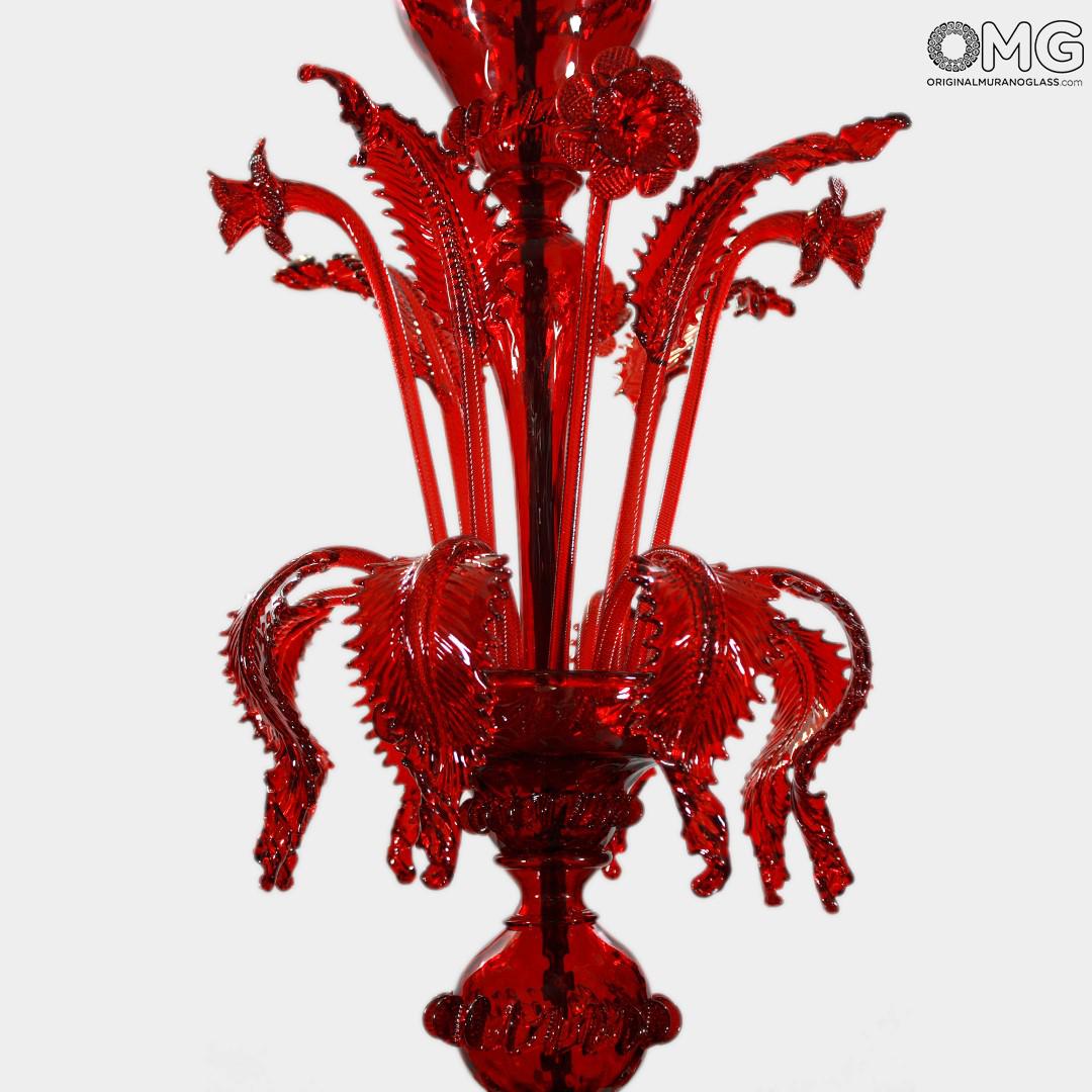 Chandelier with red crest Glass Venetian.