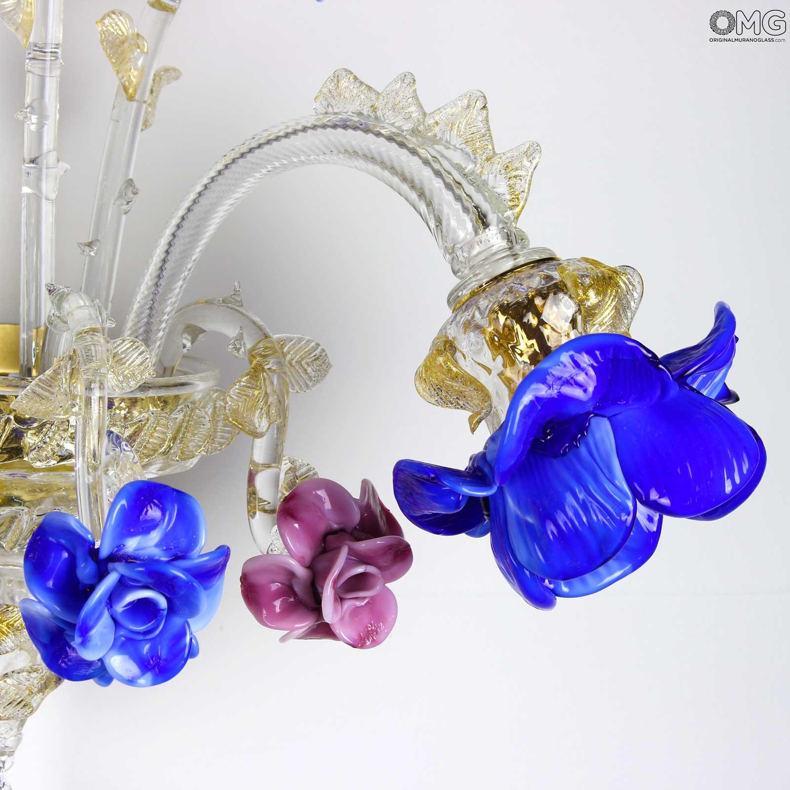 The artwork is a floral wall lamp, at Venetian style, this Murano chandelier enriches any interior room with elegance; Ideal vintage room style.All our chandelier are unique handmade.