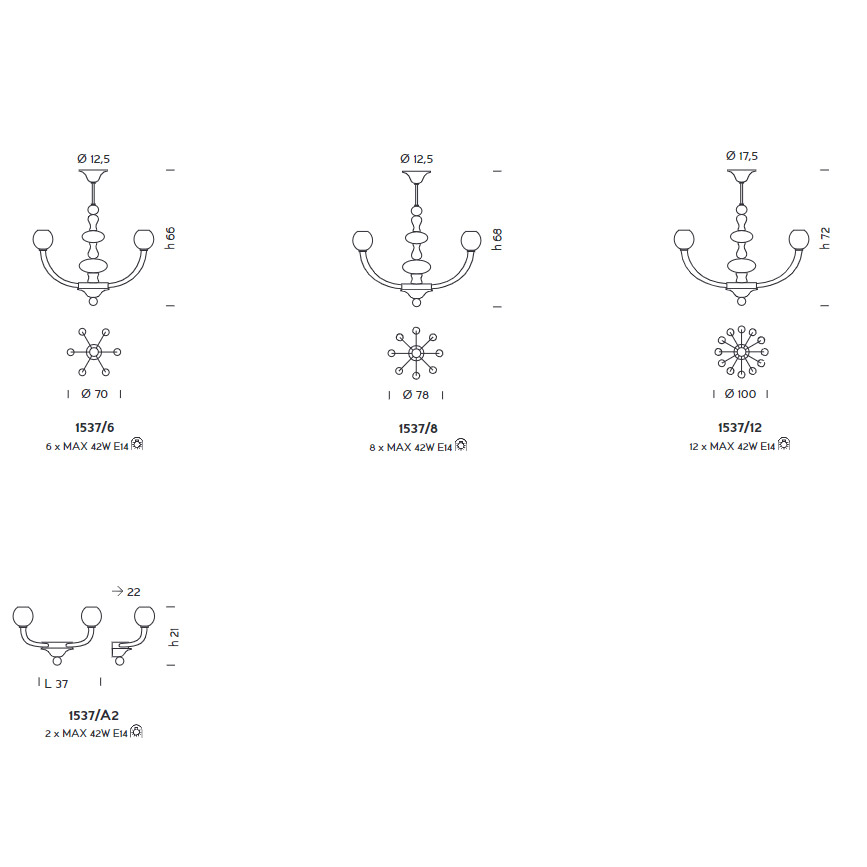 Wired with E14 bulbs (220-230V) for Europe, UK, Asia and Australia customers;