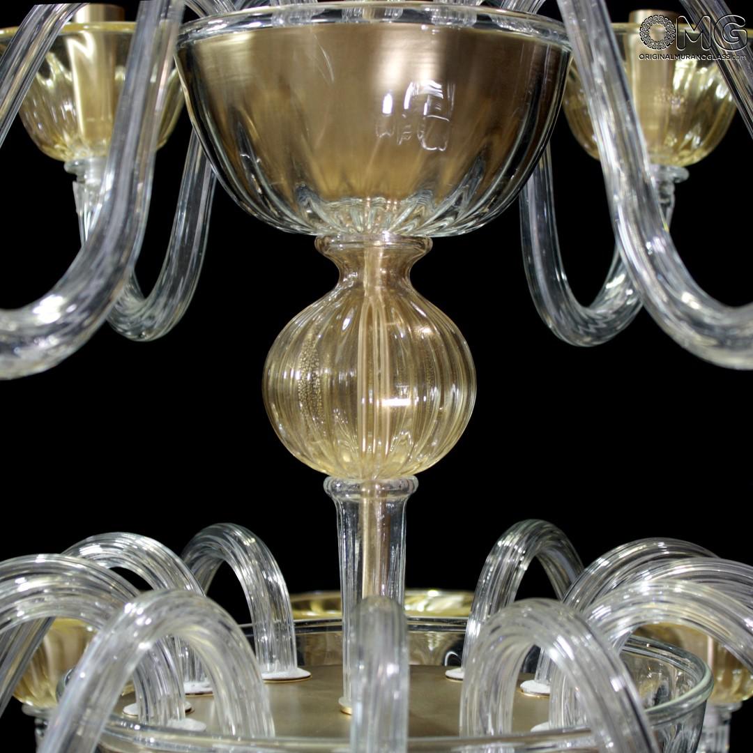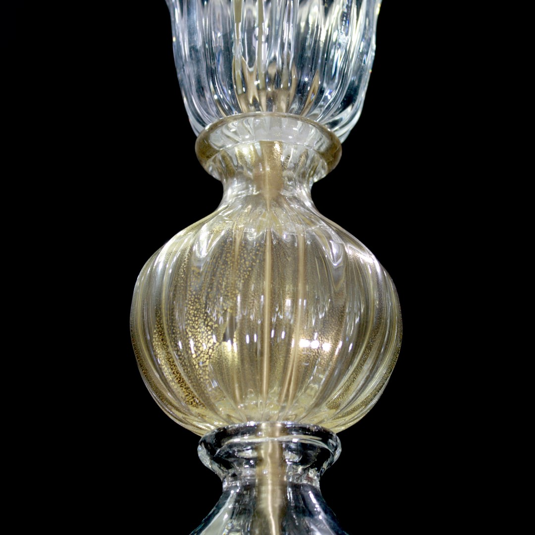 Venetian Chandelier in Original Murano Glass, clear glass crystal with gold 24 kt finitures.