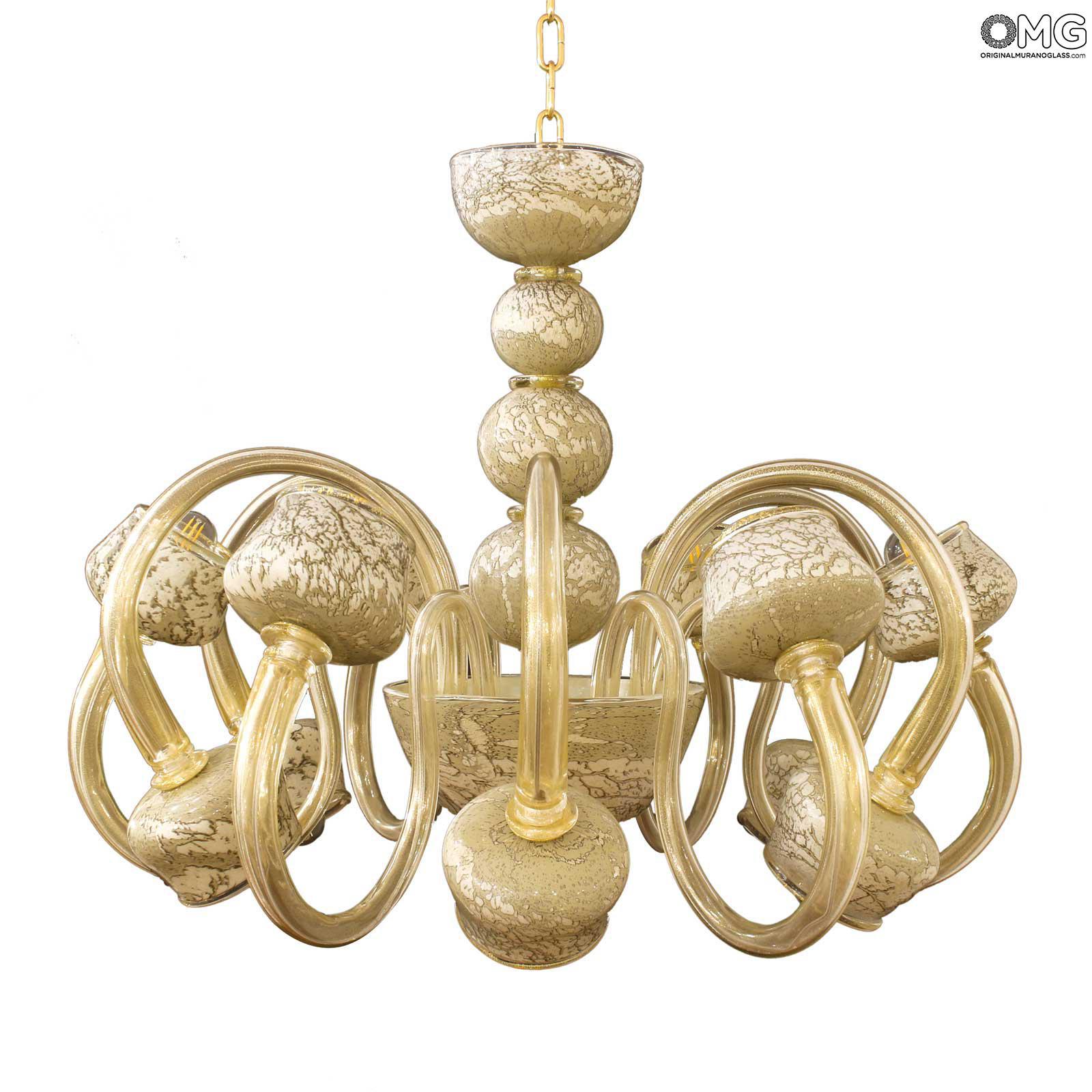 Venetian Chandelier - Modern Sultan Chalcedony Gold - Original Murano Glass