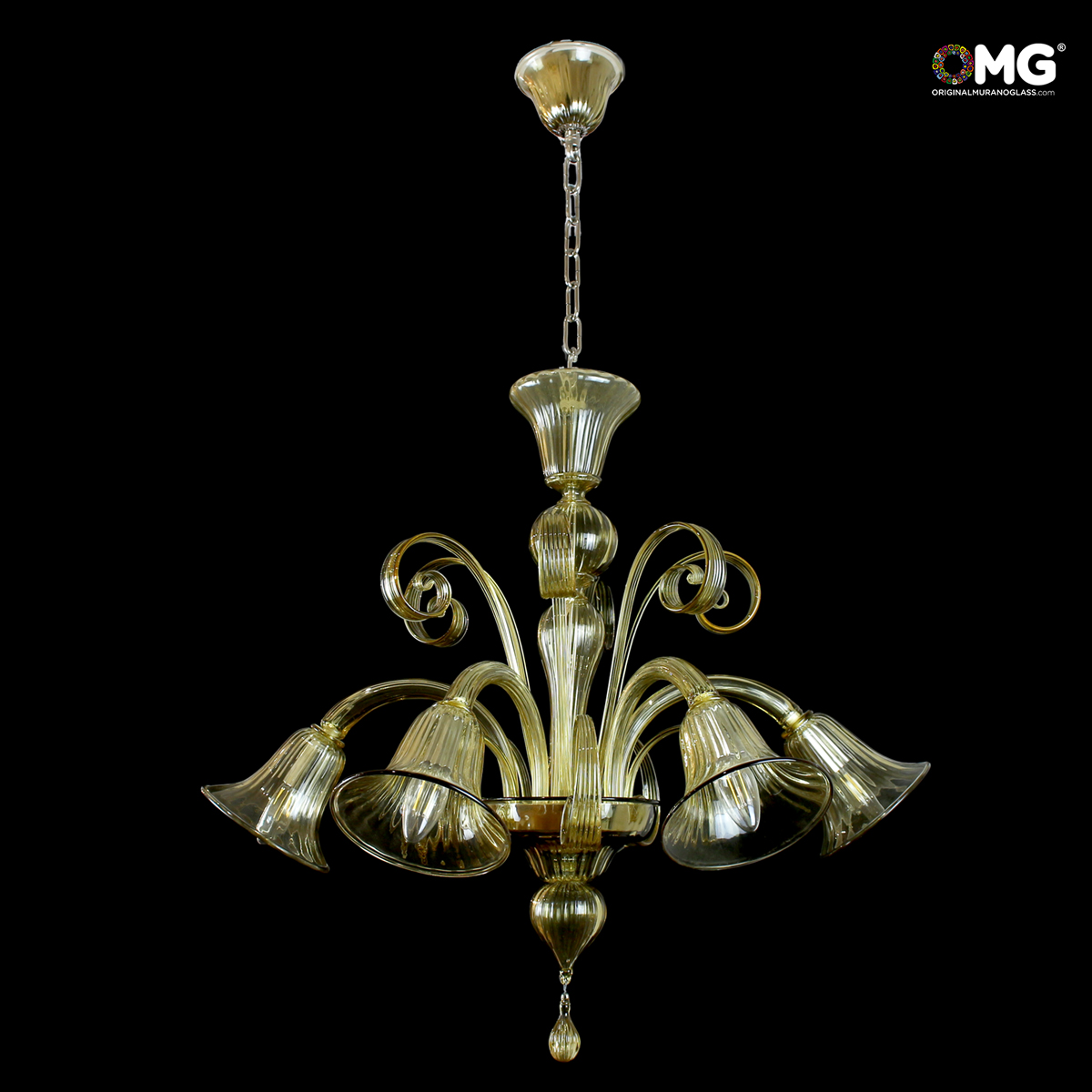 Venetian Chandelier Pastorale downwards - Amber - Original Murano Glass