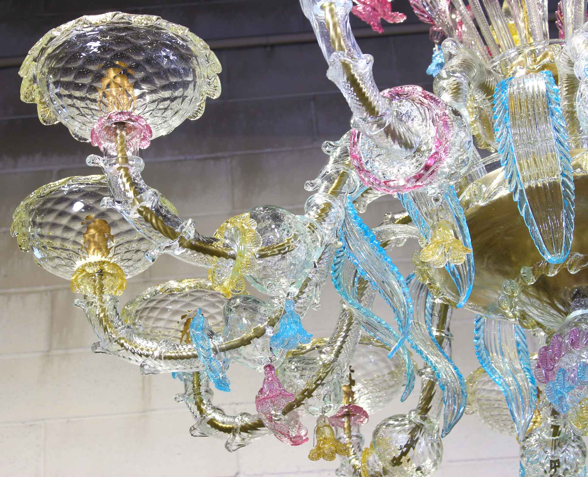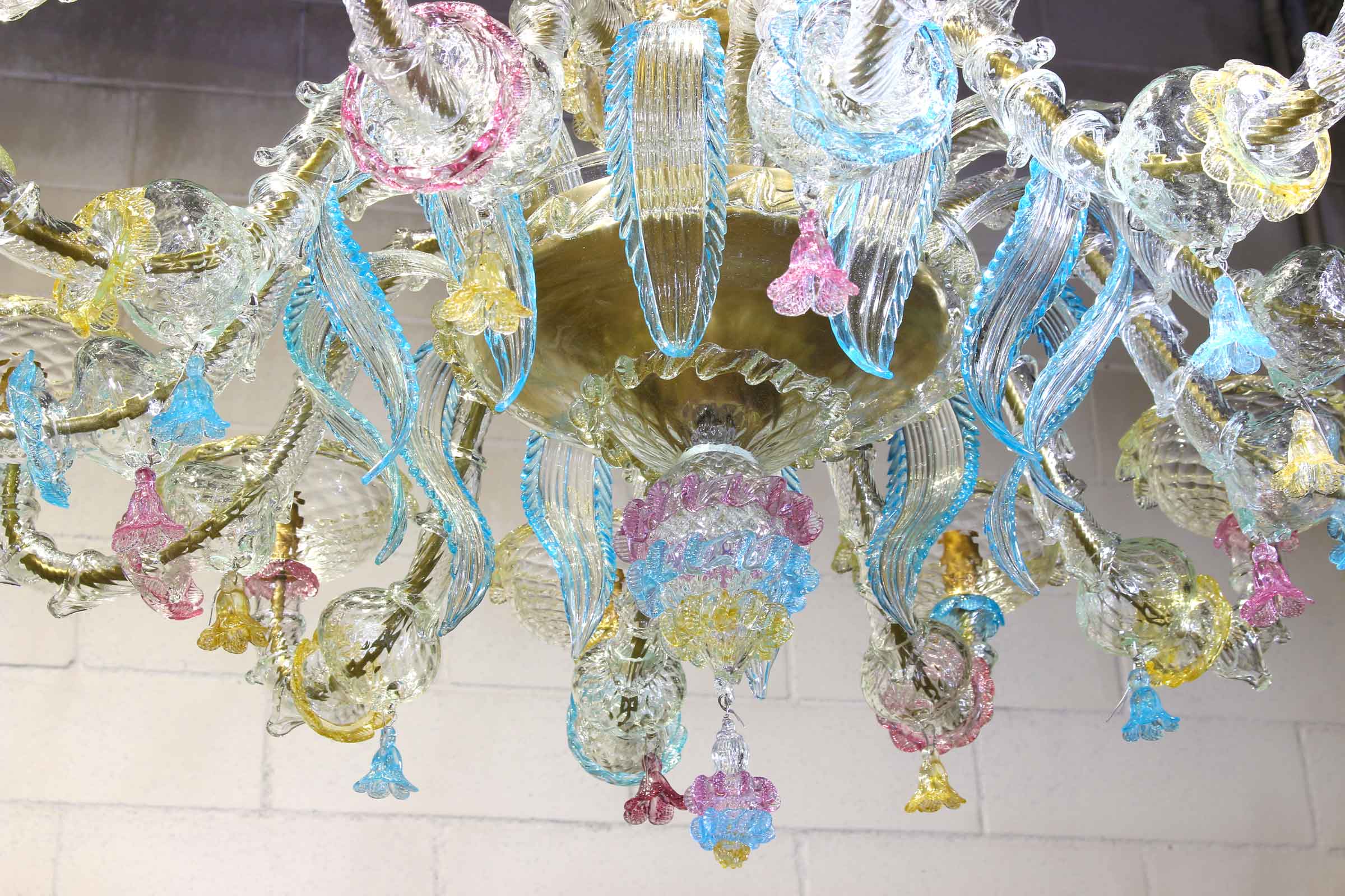 The artwork is a floral chandelier in Venetian style, this Murano chandelier enriches any interior room with elegance; Ideal for any room space, classique but also modern interior design. This venetian chandelier is an art piece itself, completely decorated and shaped by hand.