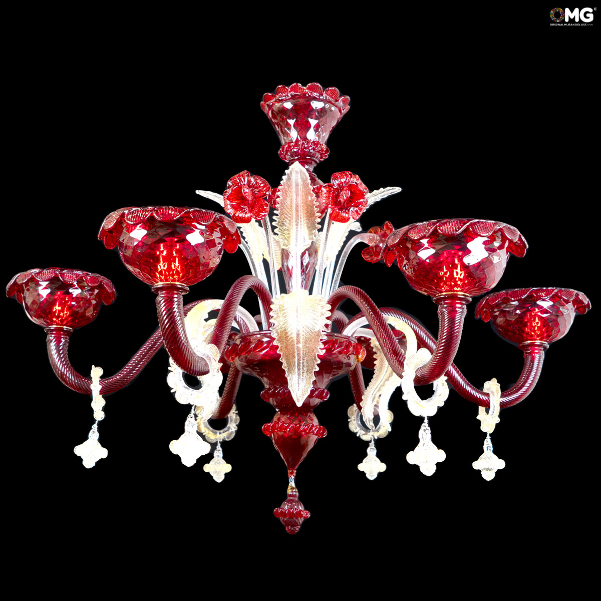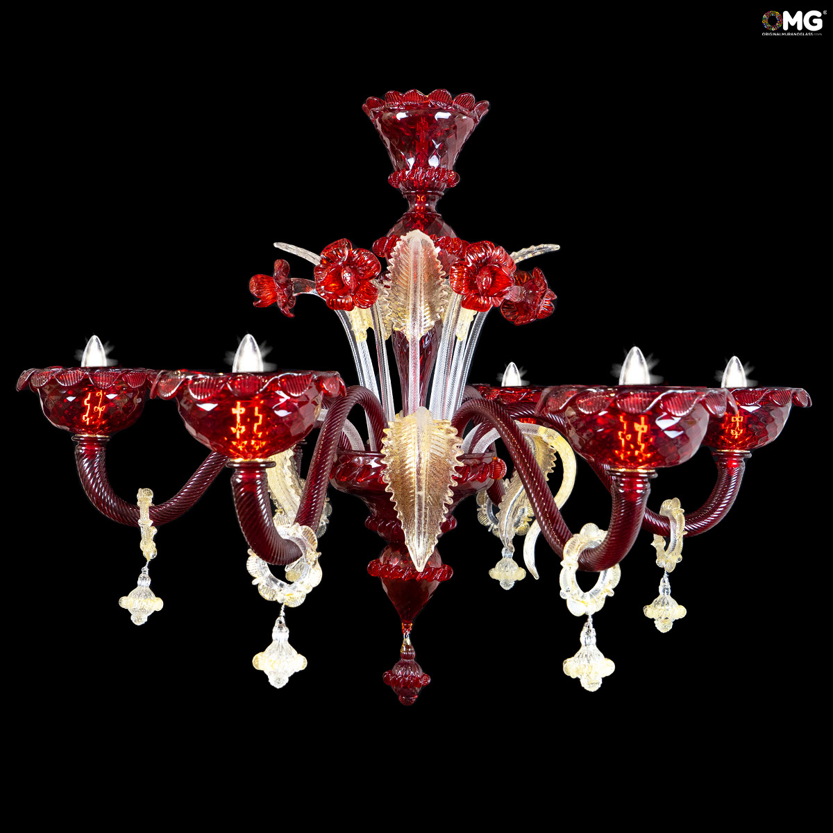Venetian Chandelier Dasy Red and pure gold - Murano Glass