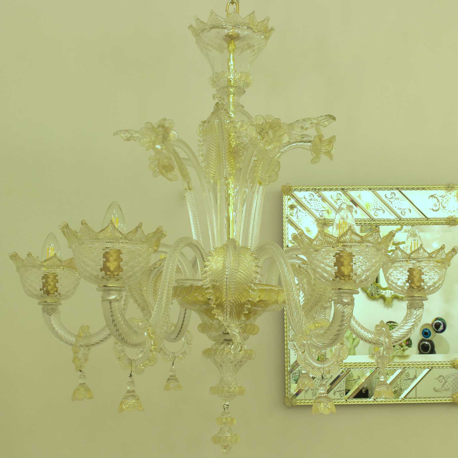 Chandelier Venetian glass and pure gold 24kt details.