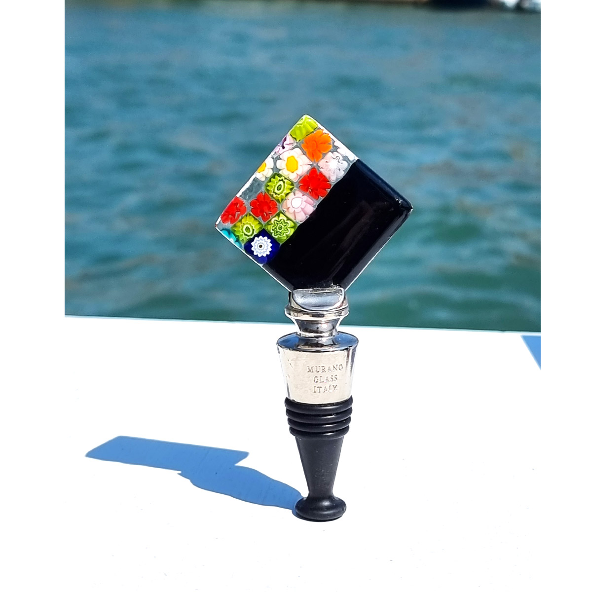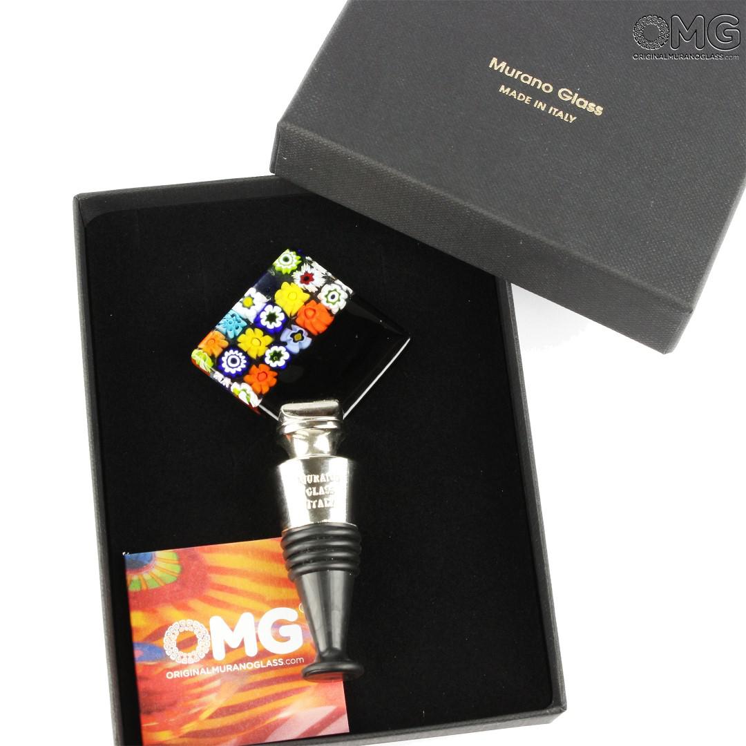 Tapón para botella negro y milfiori - Vidrio de Murano original OMG® + caja de regalo