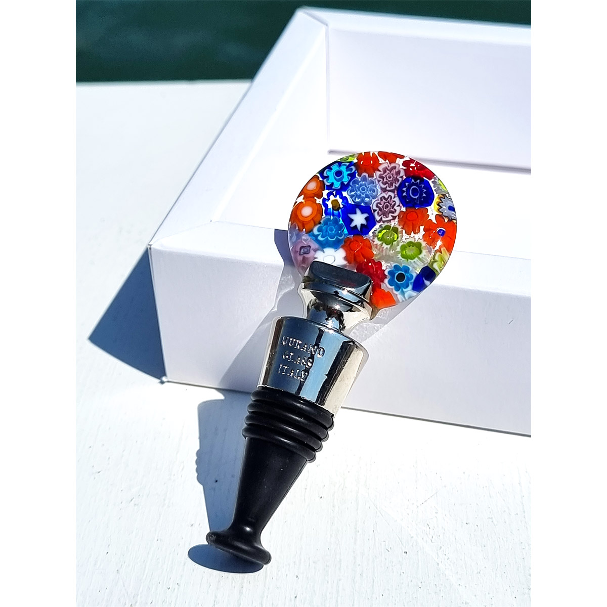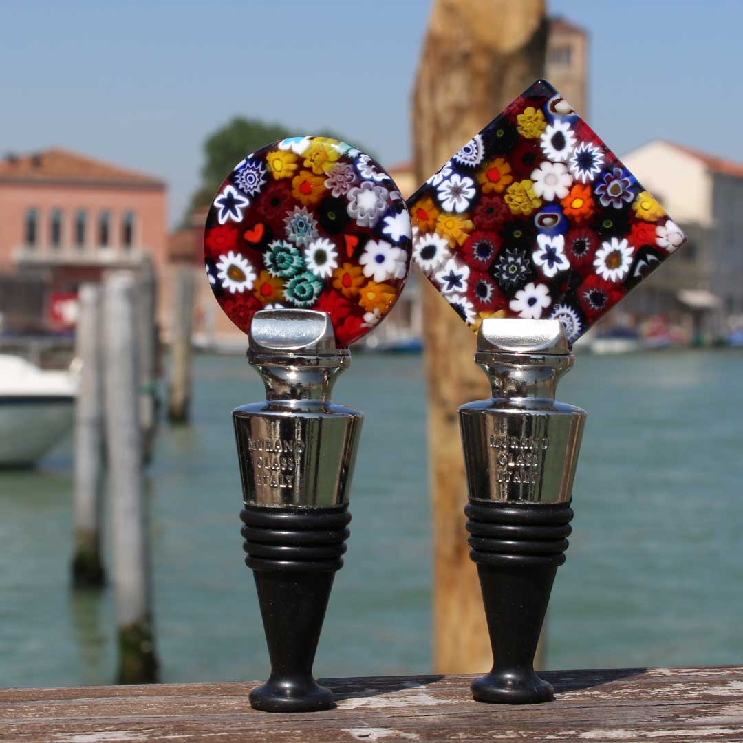 Tapón para botella Mix Millefiori redondo - Vidrio de Murano original OMG® + caja de regalo