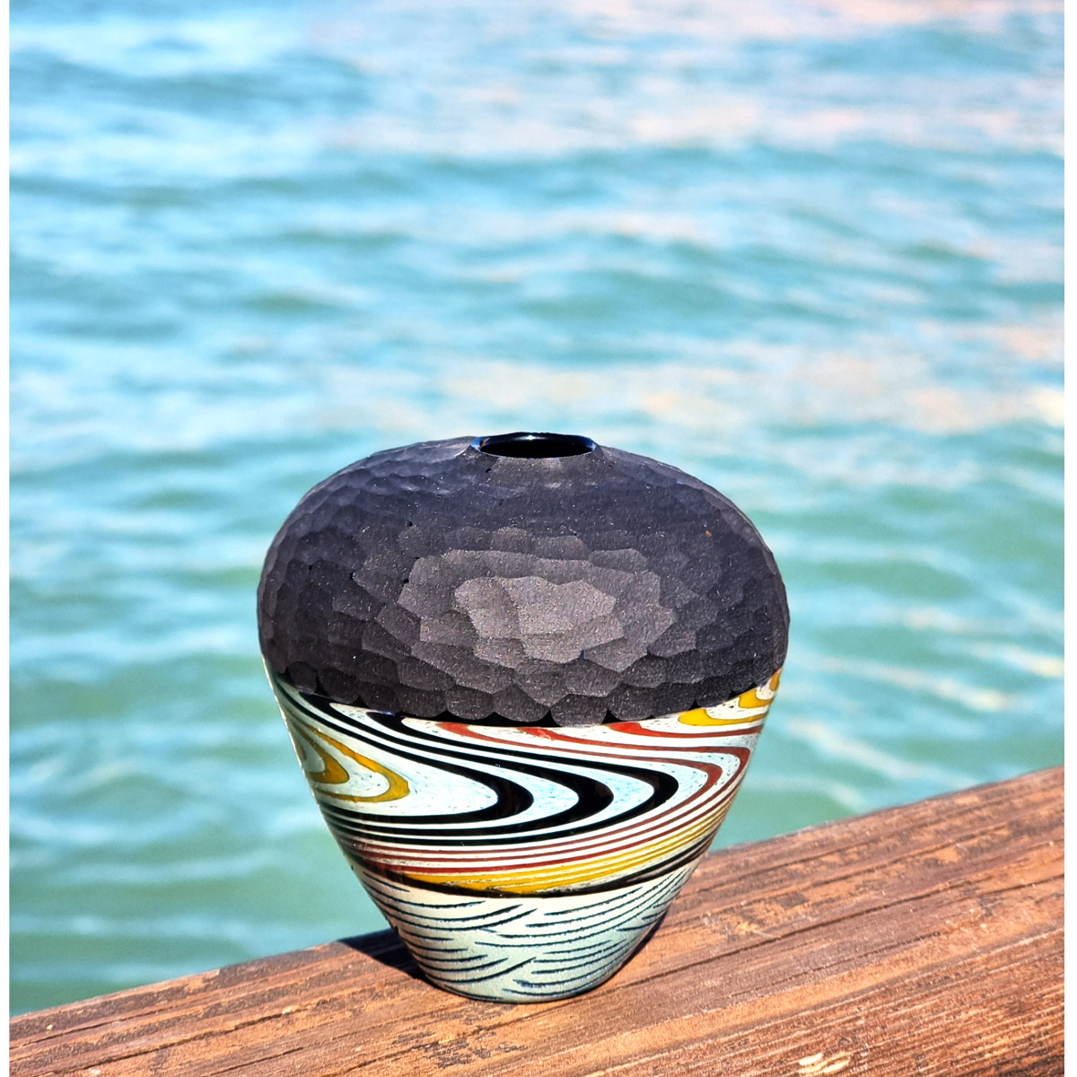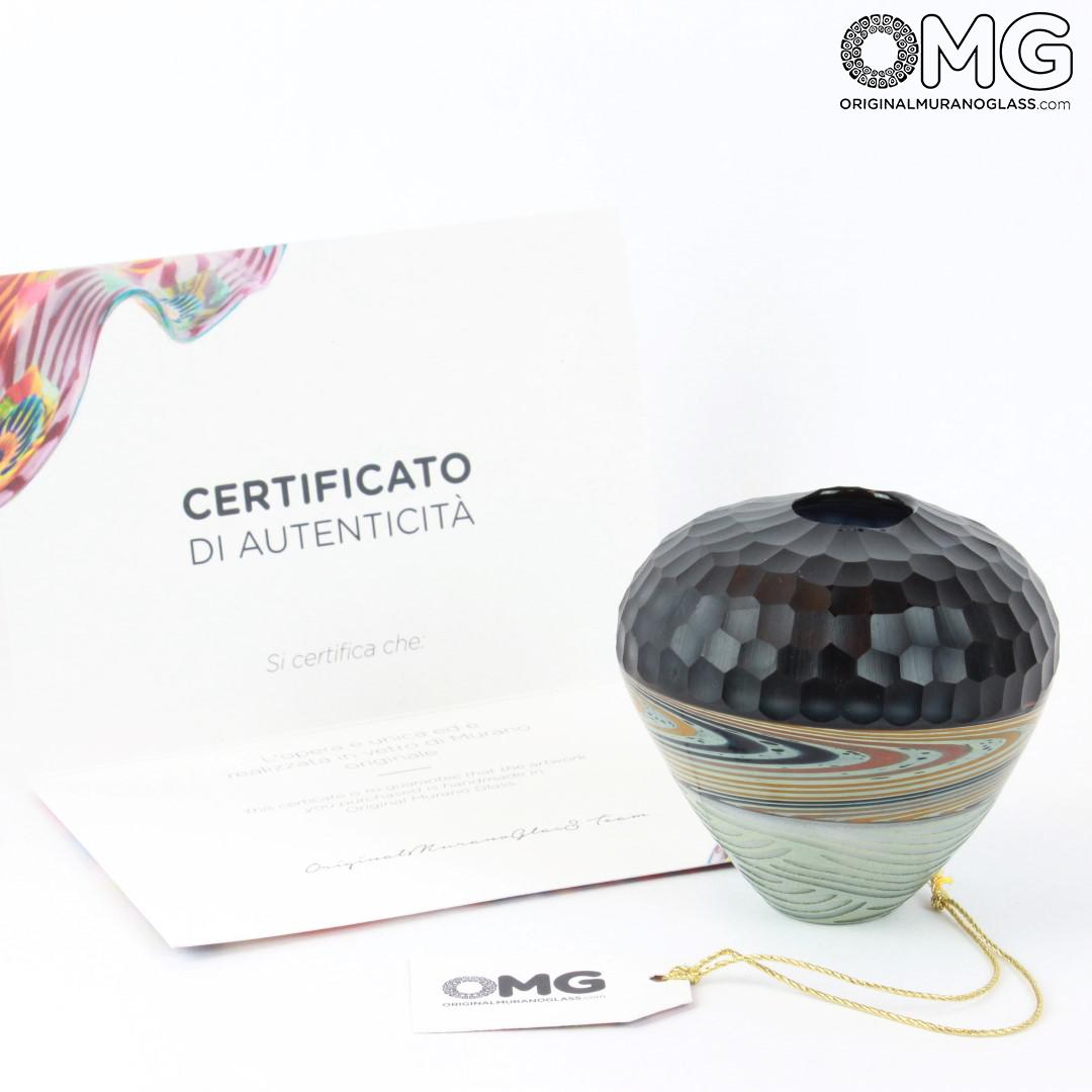 Special technique of glass blowing and engraving, black and green pastel colors and modern abstract line. Every item is signed by the master and is a unique piece of rare beauty. Made by lampwork technique. To have more details check the photos. Each piece is a little different of the one in photos, that's the beauty of handmade art.