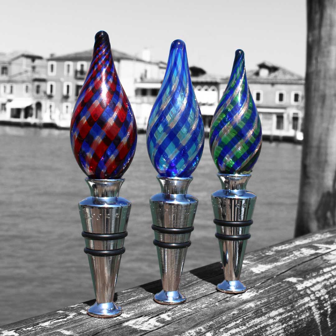 Tapón para botella, elaborado a mano con la técnica de la filigrana de varillas de vidrio, una obra de arte realizada con gran atención al detalle.