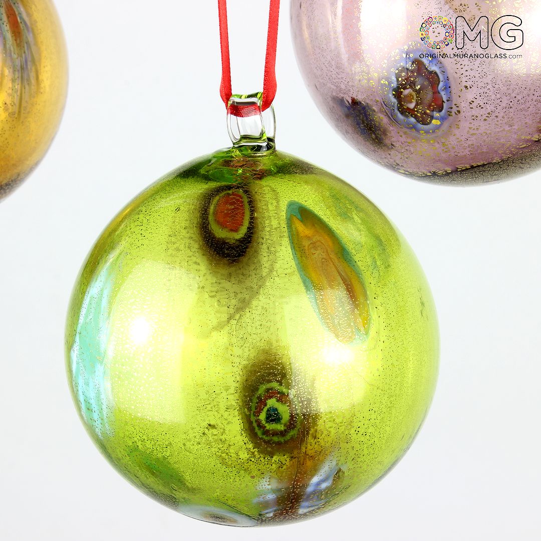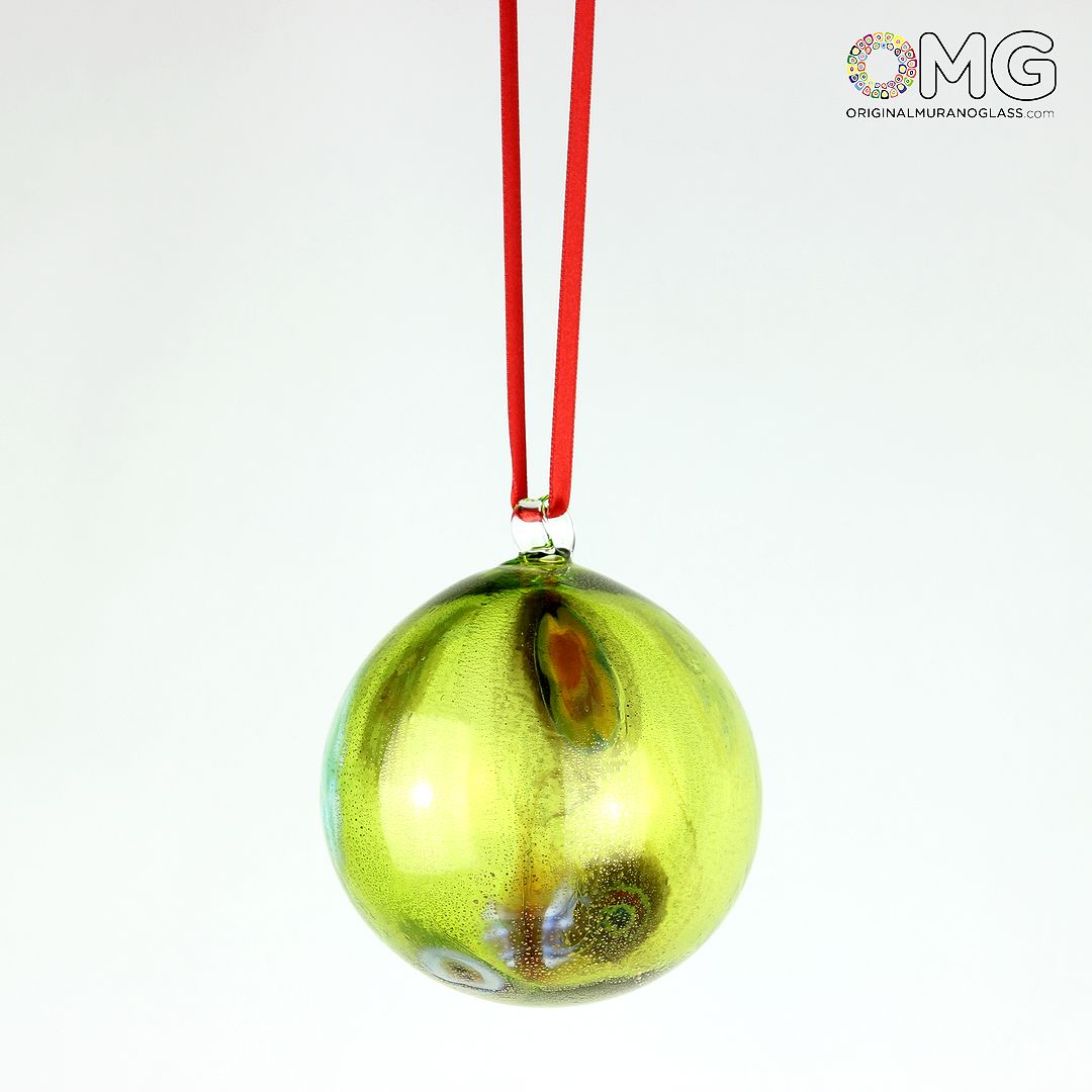Christmas Ball - Green Millefiori Fantasy - Murano Glass Xmas