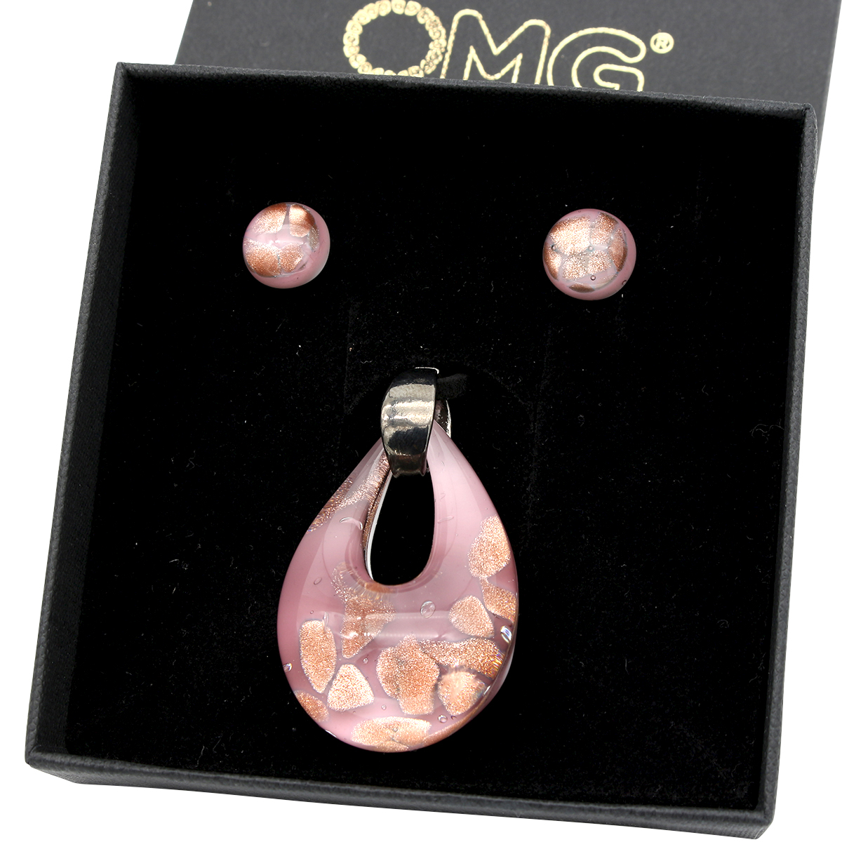 Conjunto de collar y pendientes «Drop» - Rosa - Vidrio de Murano original
