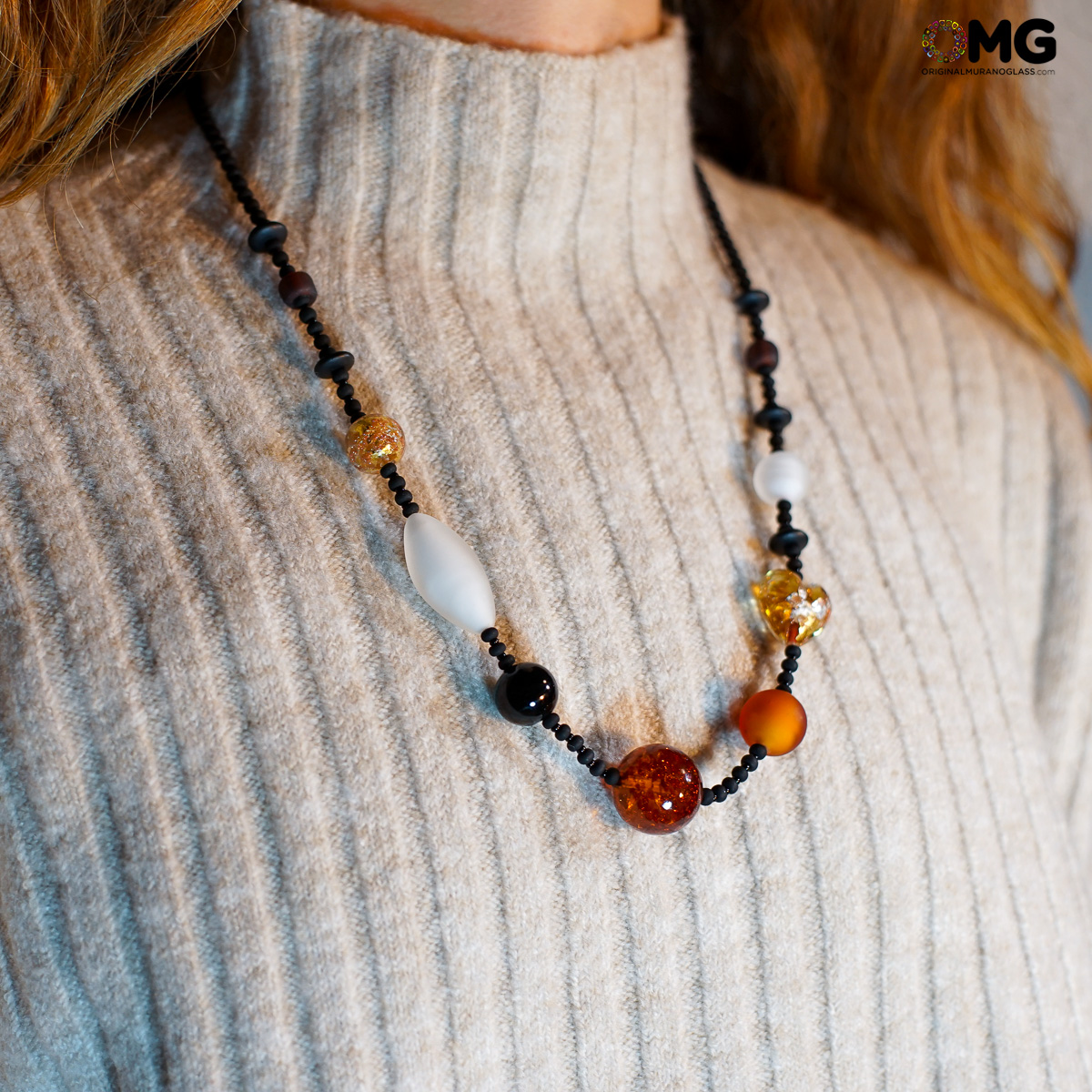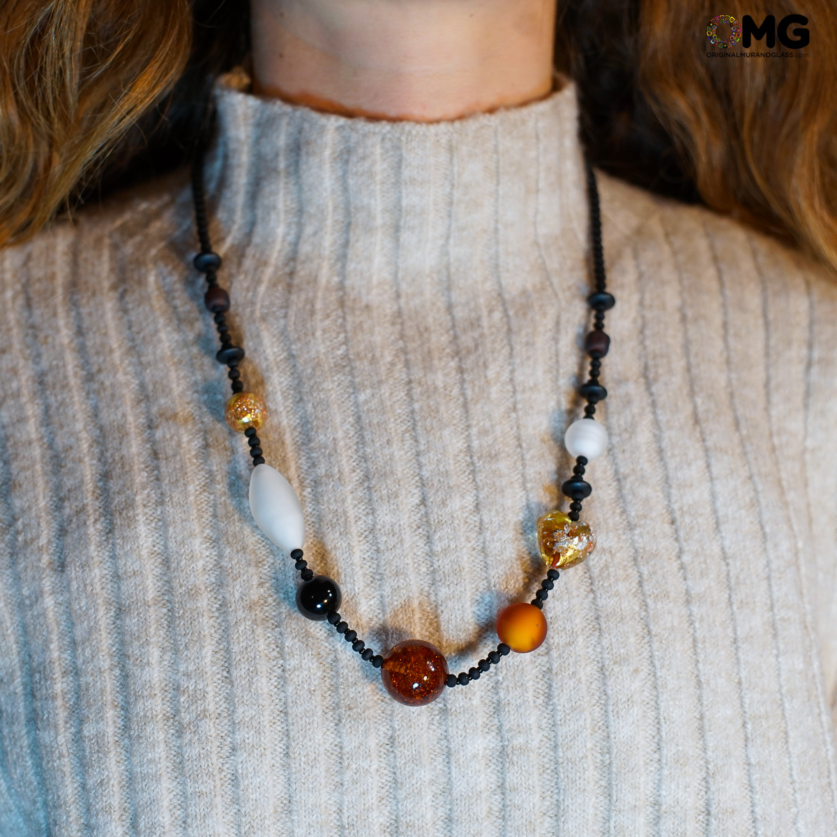 Necklace Elisa - amber and gold - Original Murano Glass OMG