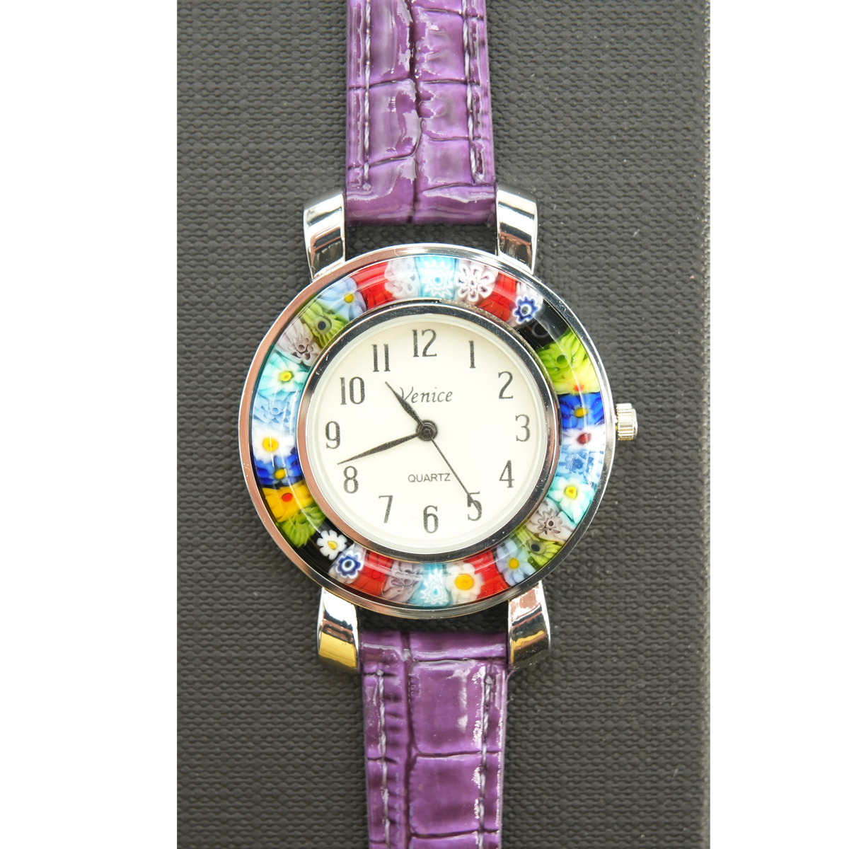 Reloj unisex - Violeta y Millefiori - Vidrio de Murano original OMG