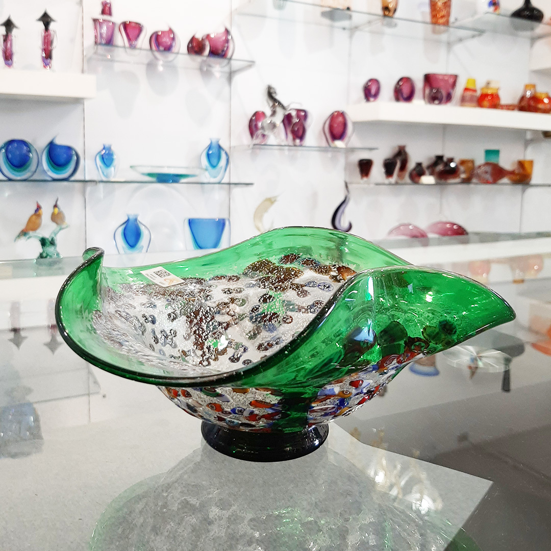 Drop Bowl Murrine - Green Silver Glass