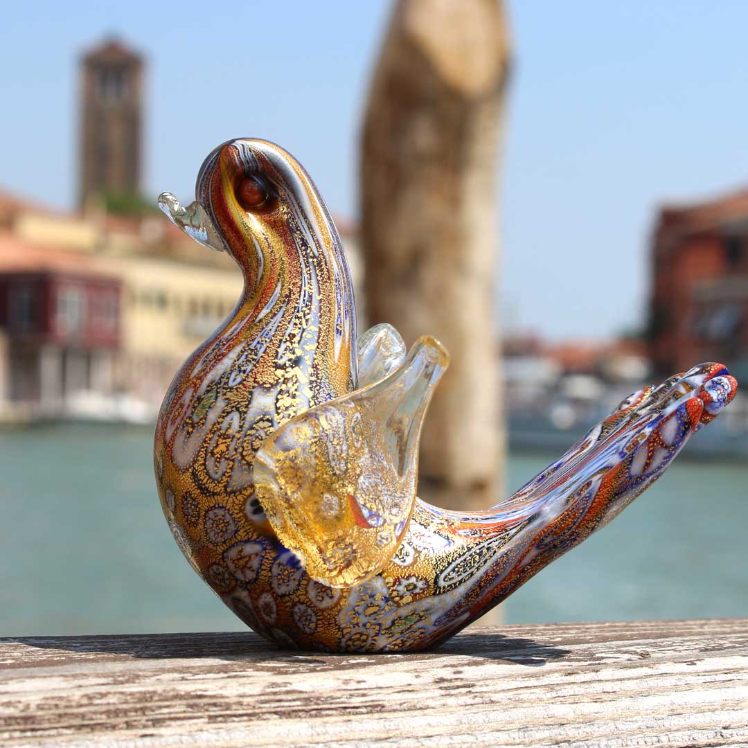 Dove Figurine in Murrine Millefiori Gold - Murano glass Handmade