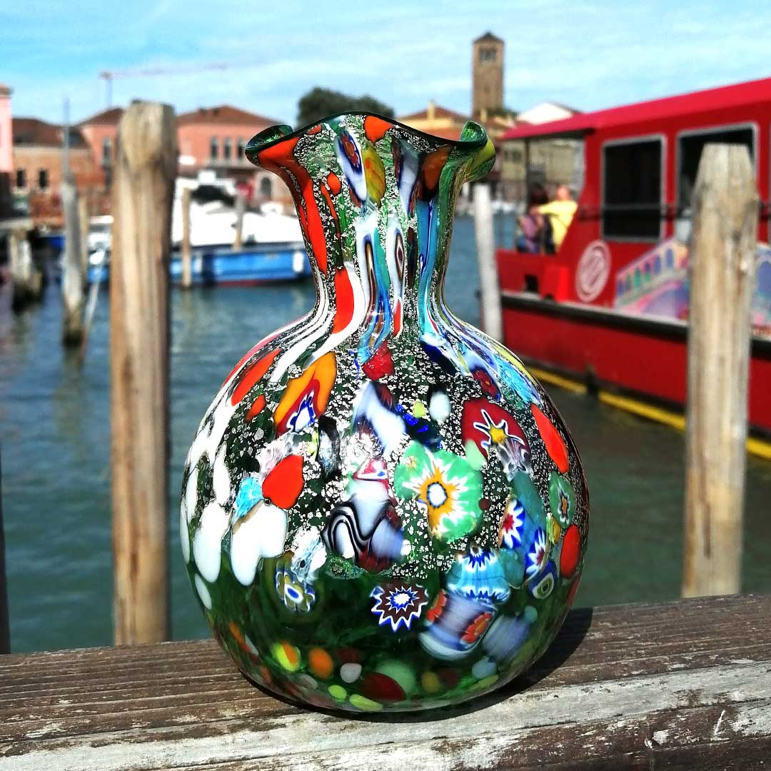 Vase made with the technique of glass blowing and murrina decoration. The vase is signed by the master Rossi.