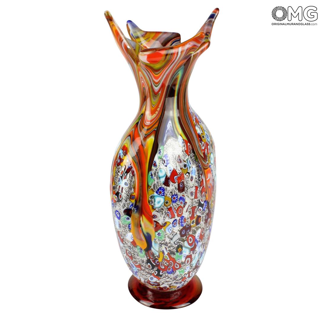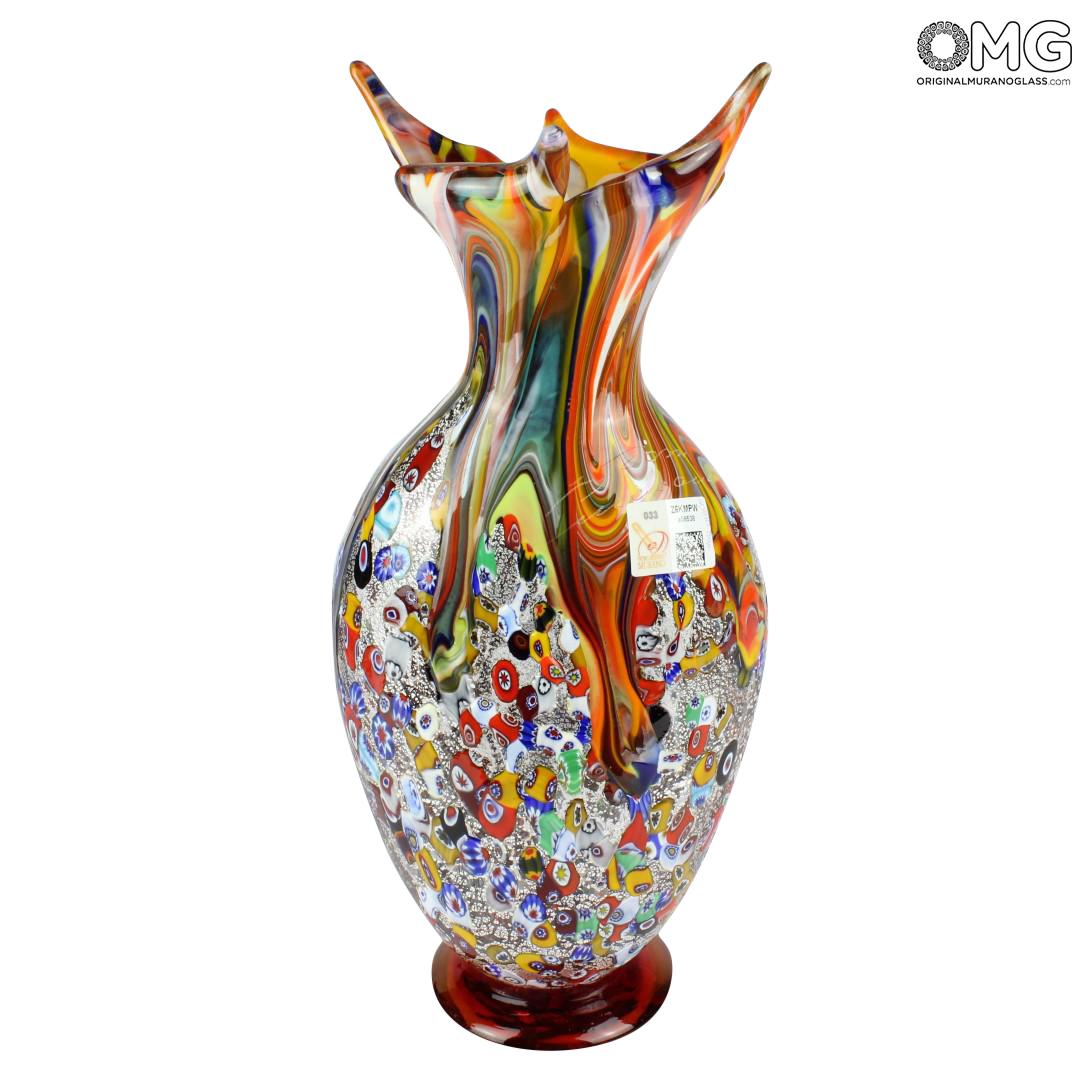 Symphony - Jarrón - Cristal de Murano Millefiori y plata