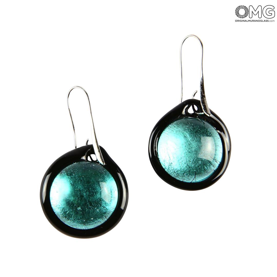 Earrings - circular submerged glass green water - Original Murano Glass OMG