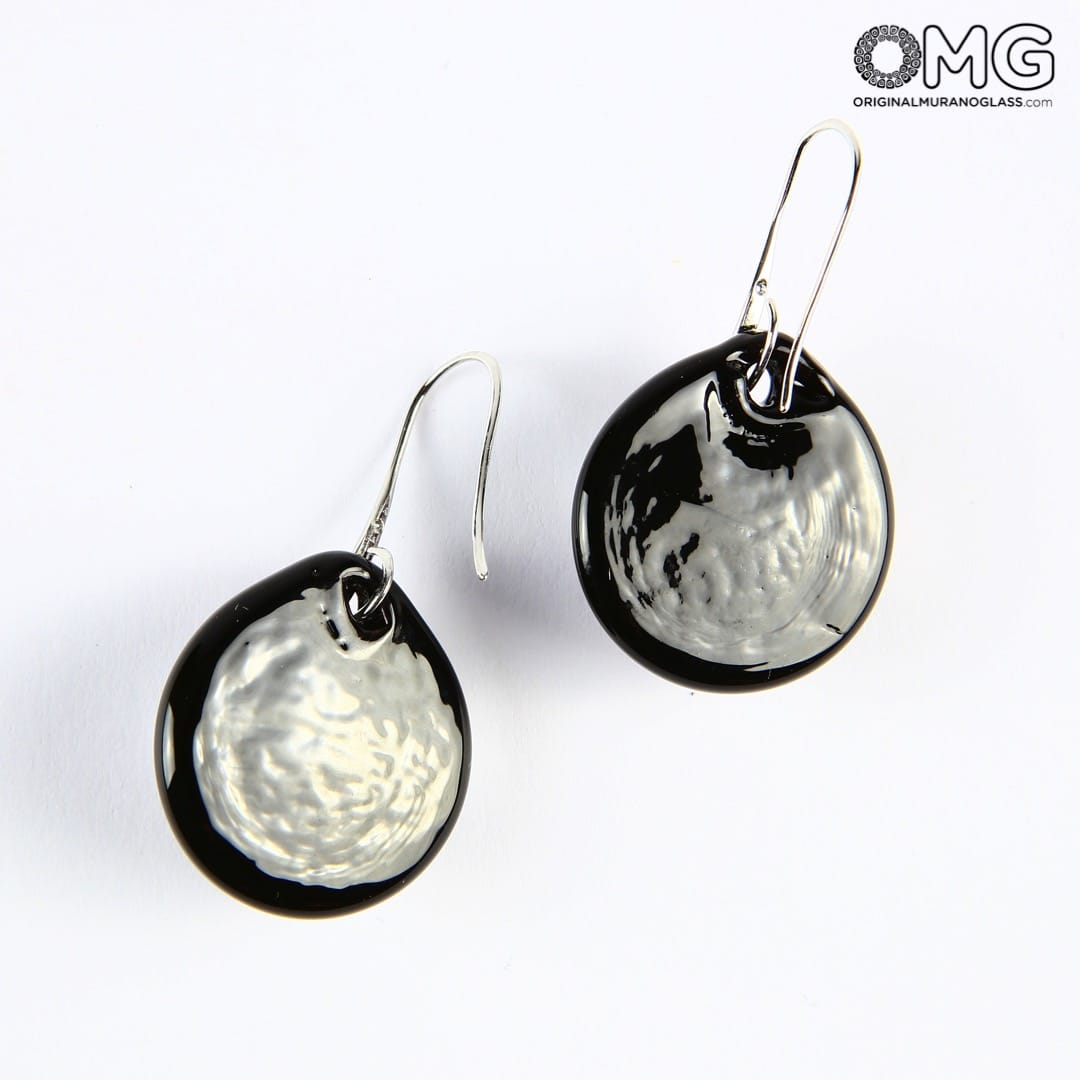 Earrings - circular submerged glass white - Original Murano Glass OMG