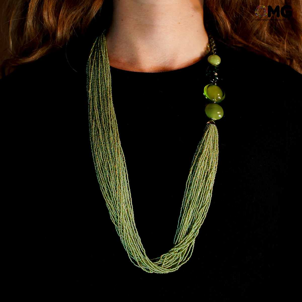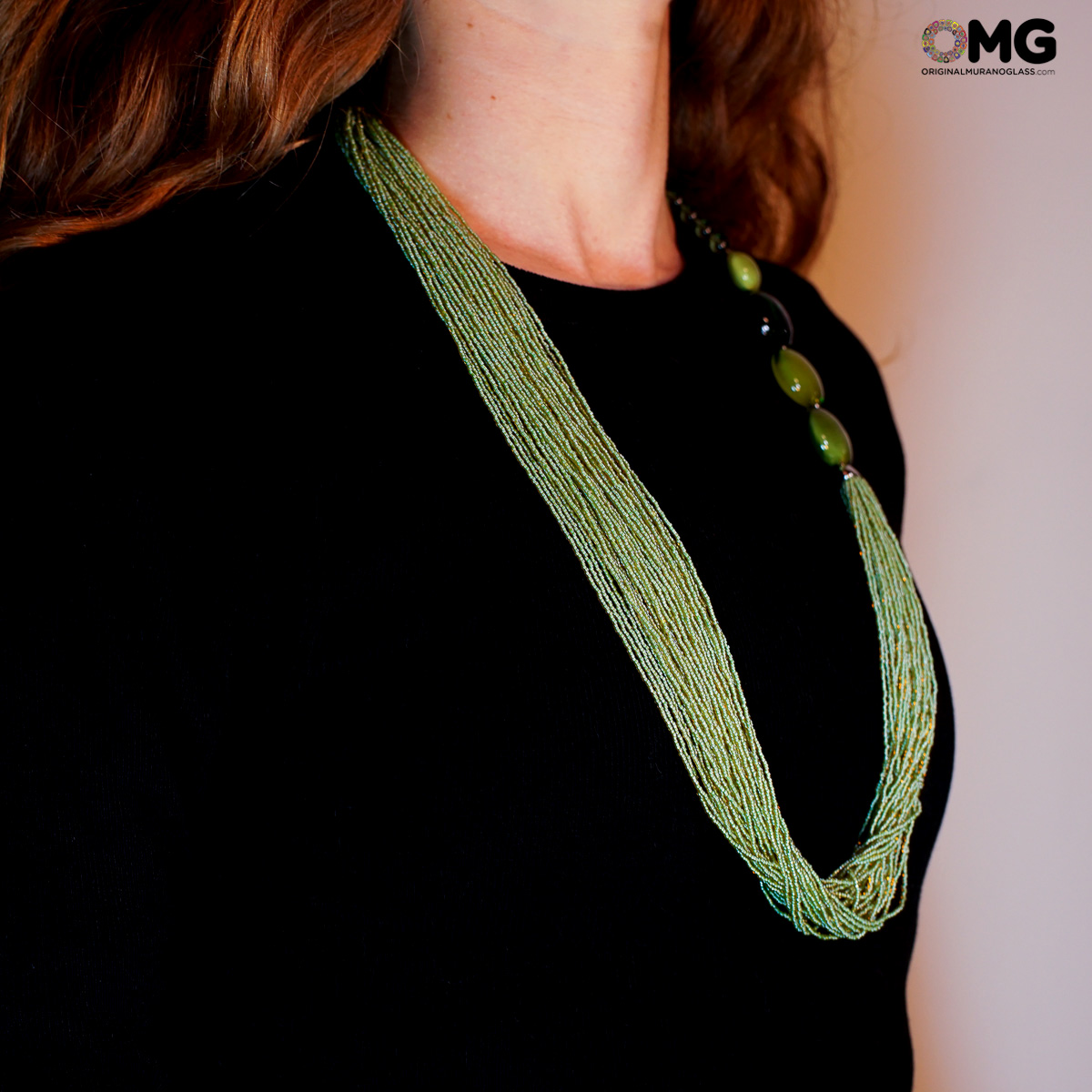 Necklace Millefili Conterie - Flavia - Green - Original Murano Glass OMG