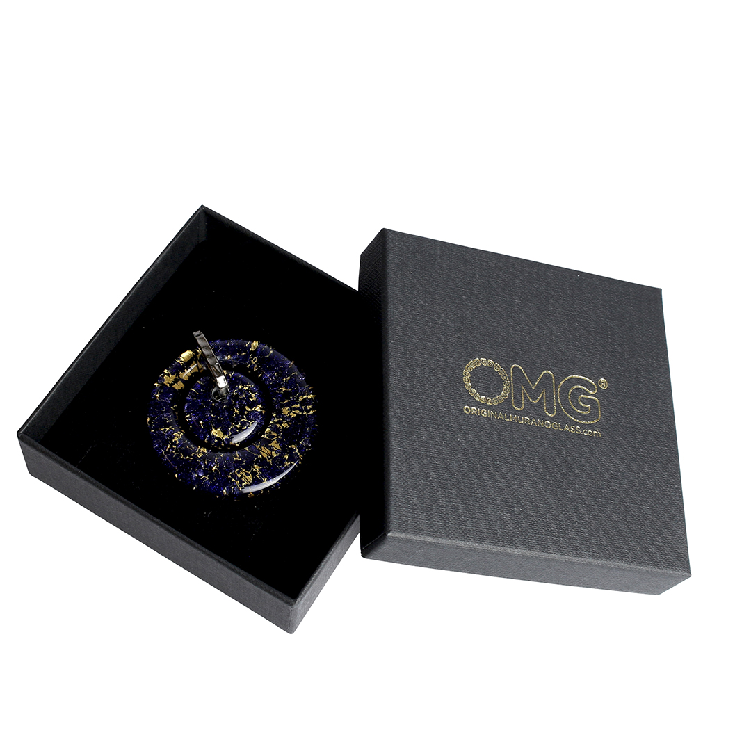 Pendant handmade in Murano glass with the technique of submerged glass over a silver leaf who make this pendant simple and easy to dress but unique in style.