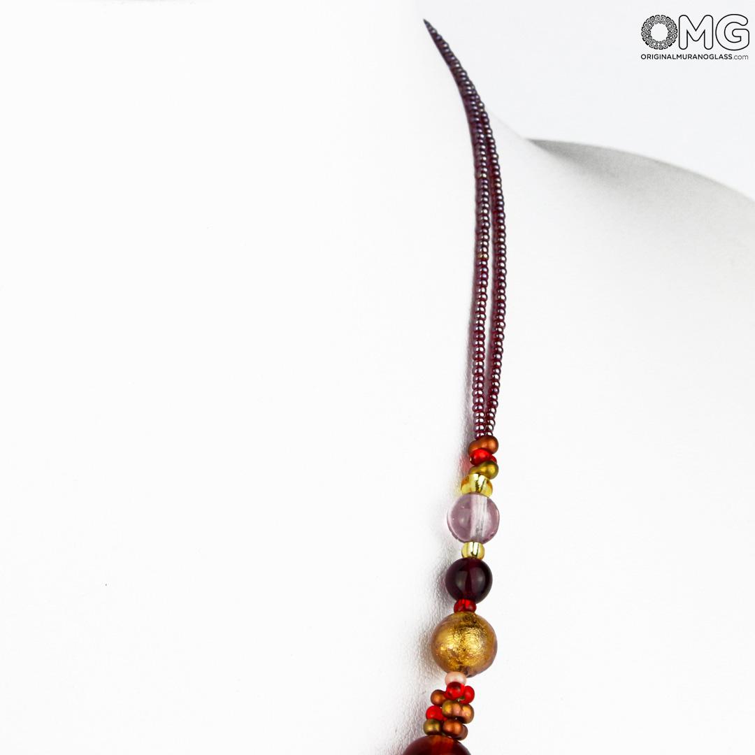 Este collar está elaborado con la técnica del vidrio soplado, y cada cuenta se trabaja como una pieza única.
