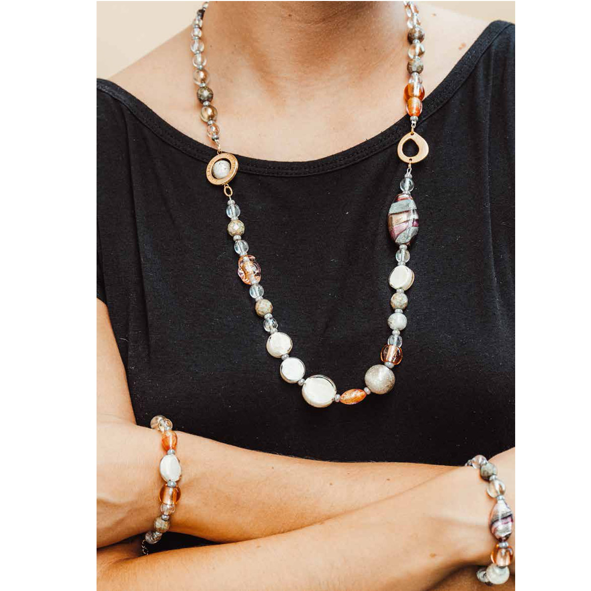 Beads are made in molten glass, so this necklace is a perfect jewels for the woman who need something for a special events or is looking for something to dress in every moment of the day.
