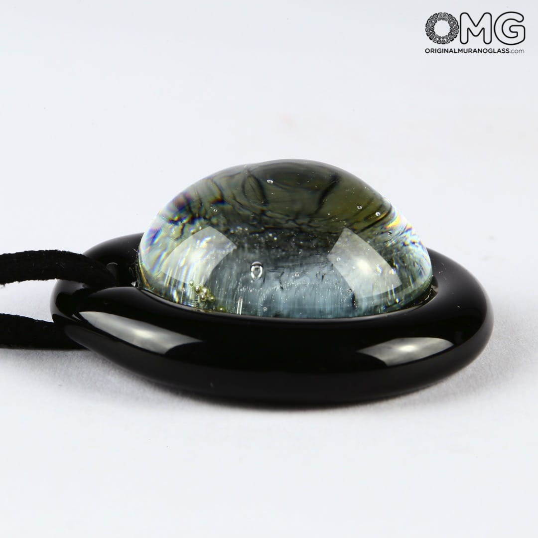 Pendant handmade in Murano glass with the technique of submerged glass over a silver leaf who make this pendant simple and easy to dress but unique in style.
