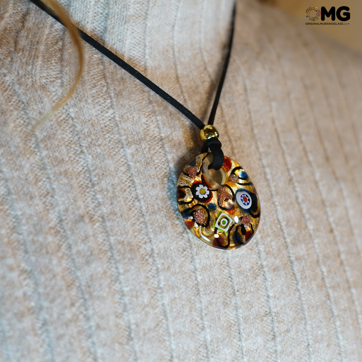 Collar con colgante hecho a mano en cristal de Murano mediante la técnica de fusión del vidrio, con pan de oro de 24 quilates. Este colgante es sencillo y fácil de combinar, pero con un estilo único.