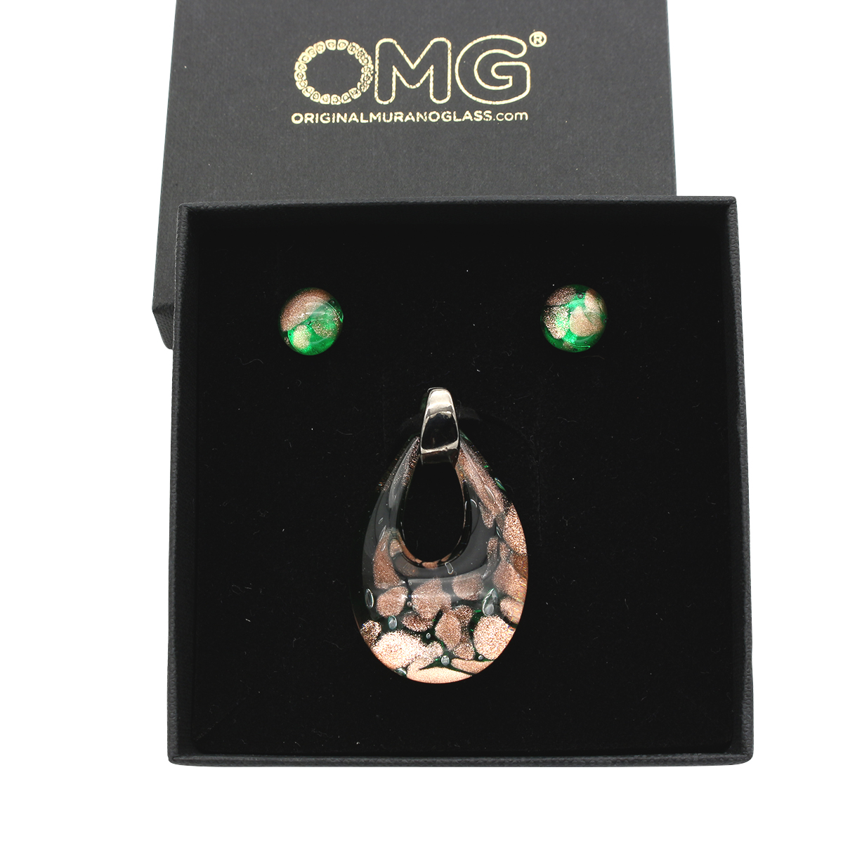 Glass pandant and earrings hand made with avventurina glass decoration who gives to this necklace elegance and preciosity.