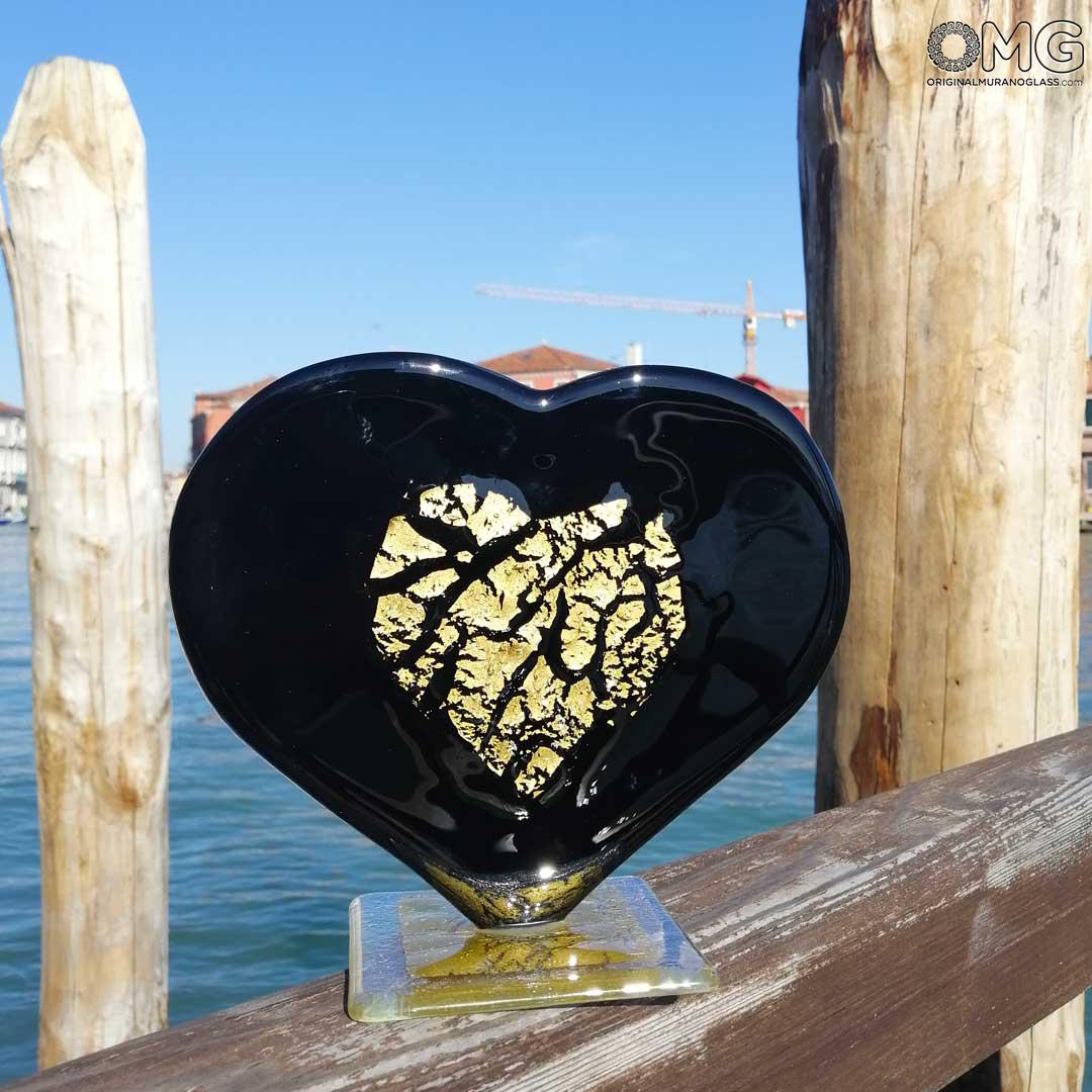Corazón de amor - Cristal negro con oro puro - Cristal de Murano original Omg