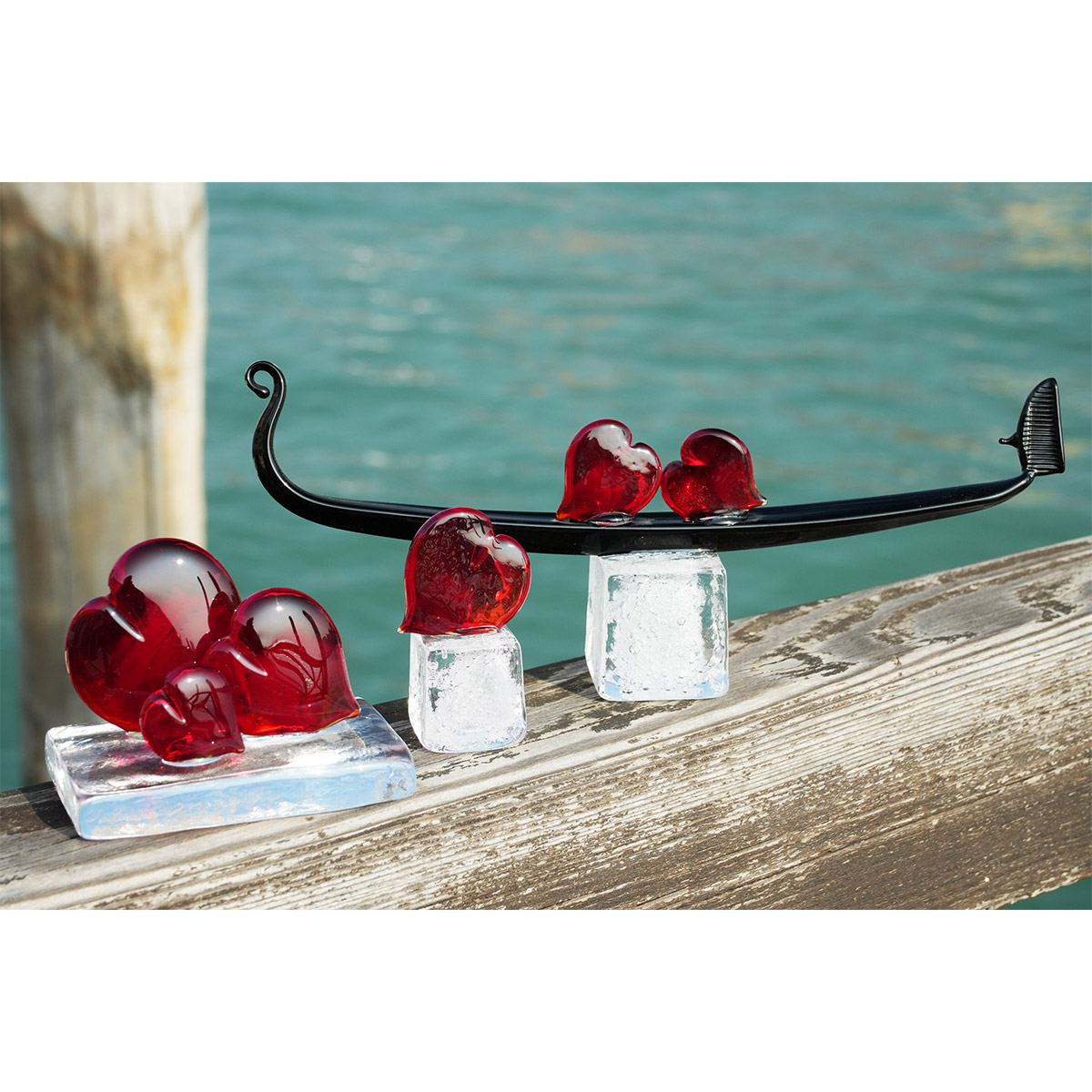Hearts Love family - Paperweight - Original Murano Glass OMG