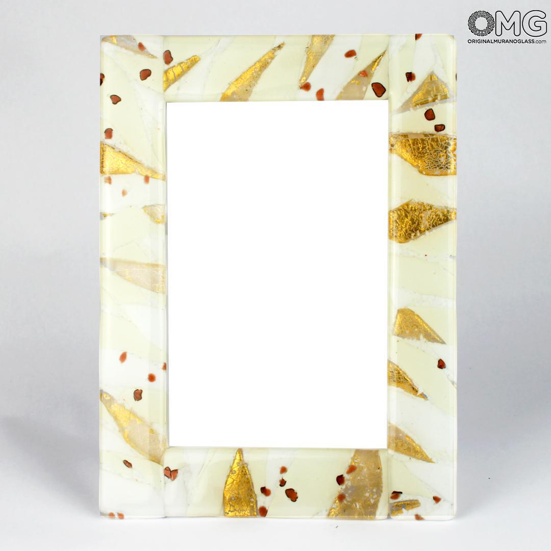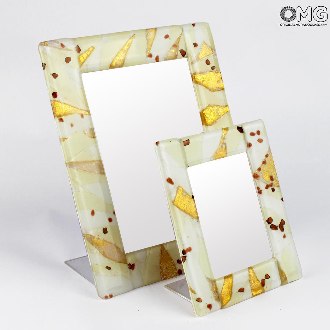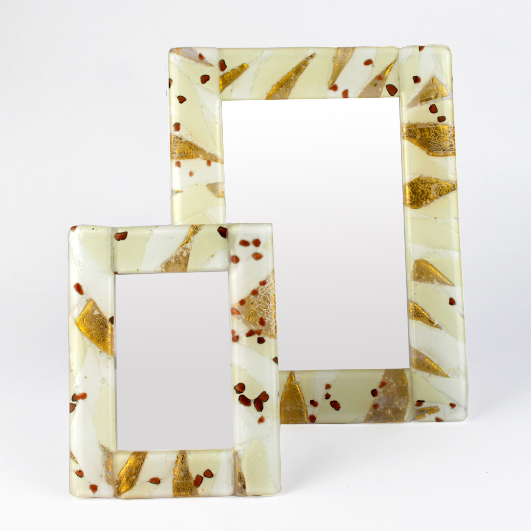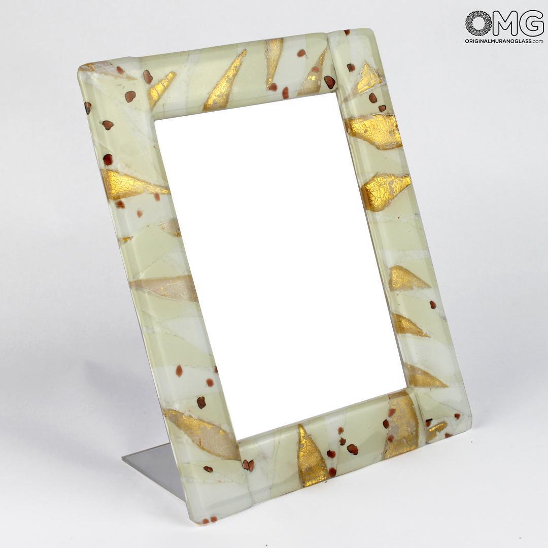 Marco de fotos elaborado con la técnica del fusing de vidrio. Un marco con una textura elegante, decorado con pan de oro auténtico de 24 quilates.
