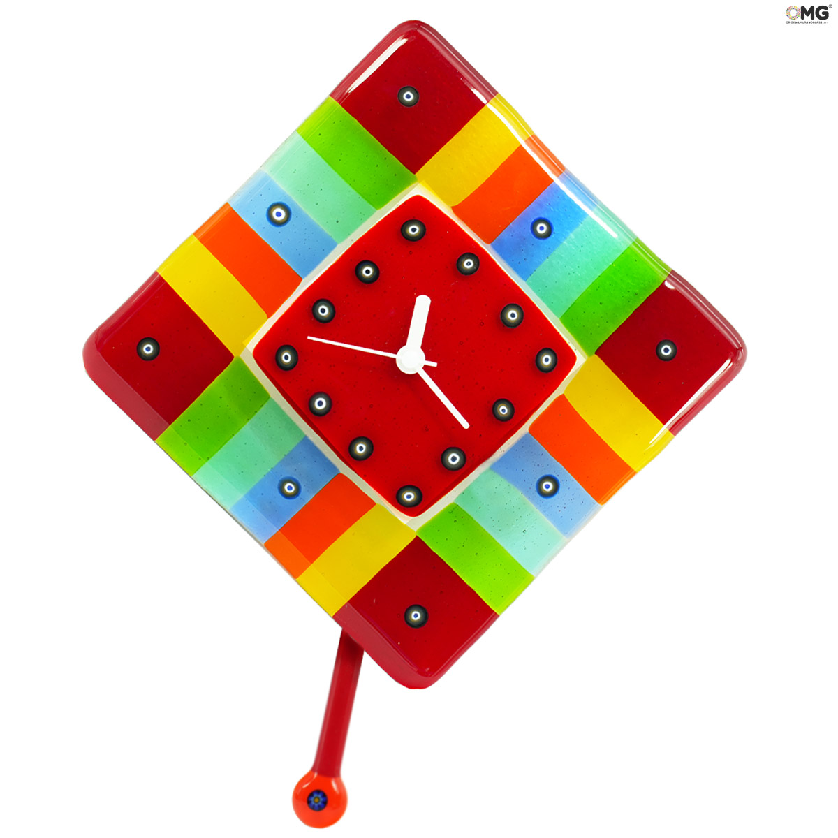 Quadrati - Orologio da parete - Pendolo - vetro di Murano OMG
