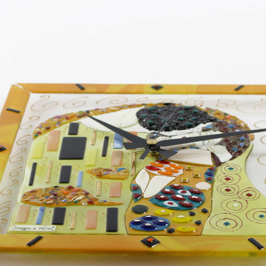L'orologio in vetro di Murano è un omaggio all'artista Klimt e al suo celebre dipinto.