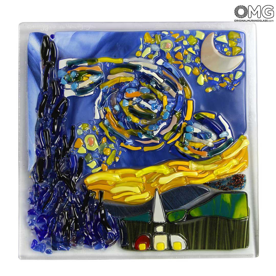 Quadro in vetro tributo all'artista Van Gogh, realizzato a mano con la tecnica della vetrofusione.