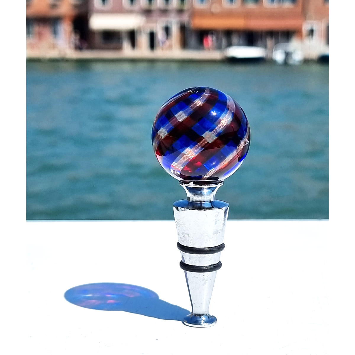 Tappo per bottiglia in vetro di Murano con filigrana Rosso blu + Scatola
