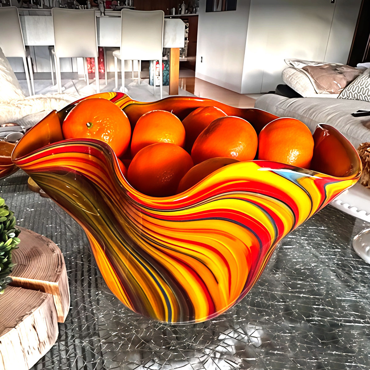 Il centrotavola è realizzato con la tecnica del vetro soffiato.