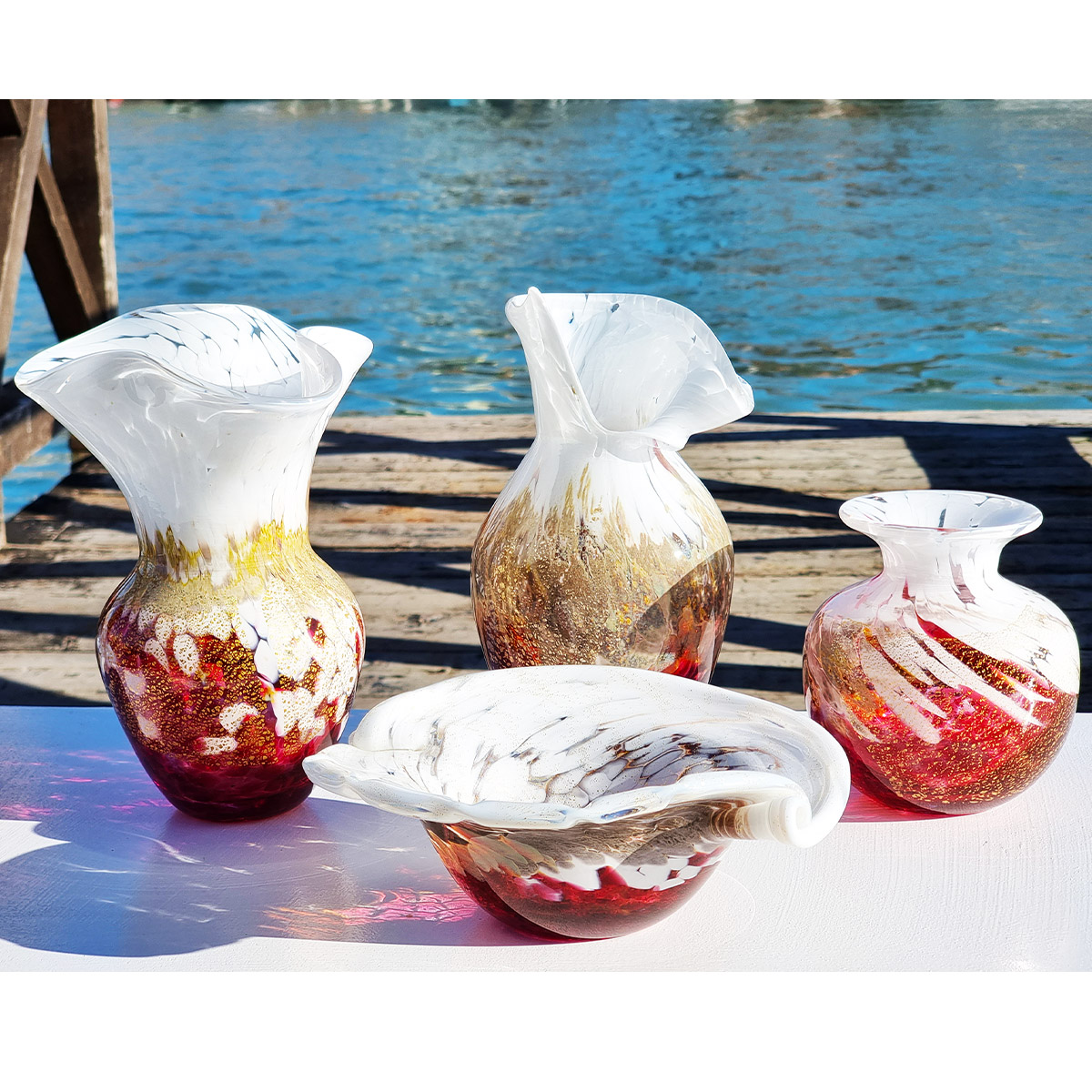 La particolare texture ondulata e l'alternanza di colori sono stati eseguiti dal maestro vetraio in maniera magistrale per dar vita ad un'opera d'arte di facile apprezzamento ma di grande impatto scenico, ideale per abbellire qualsiaisi ambiente.