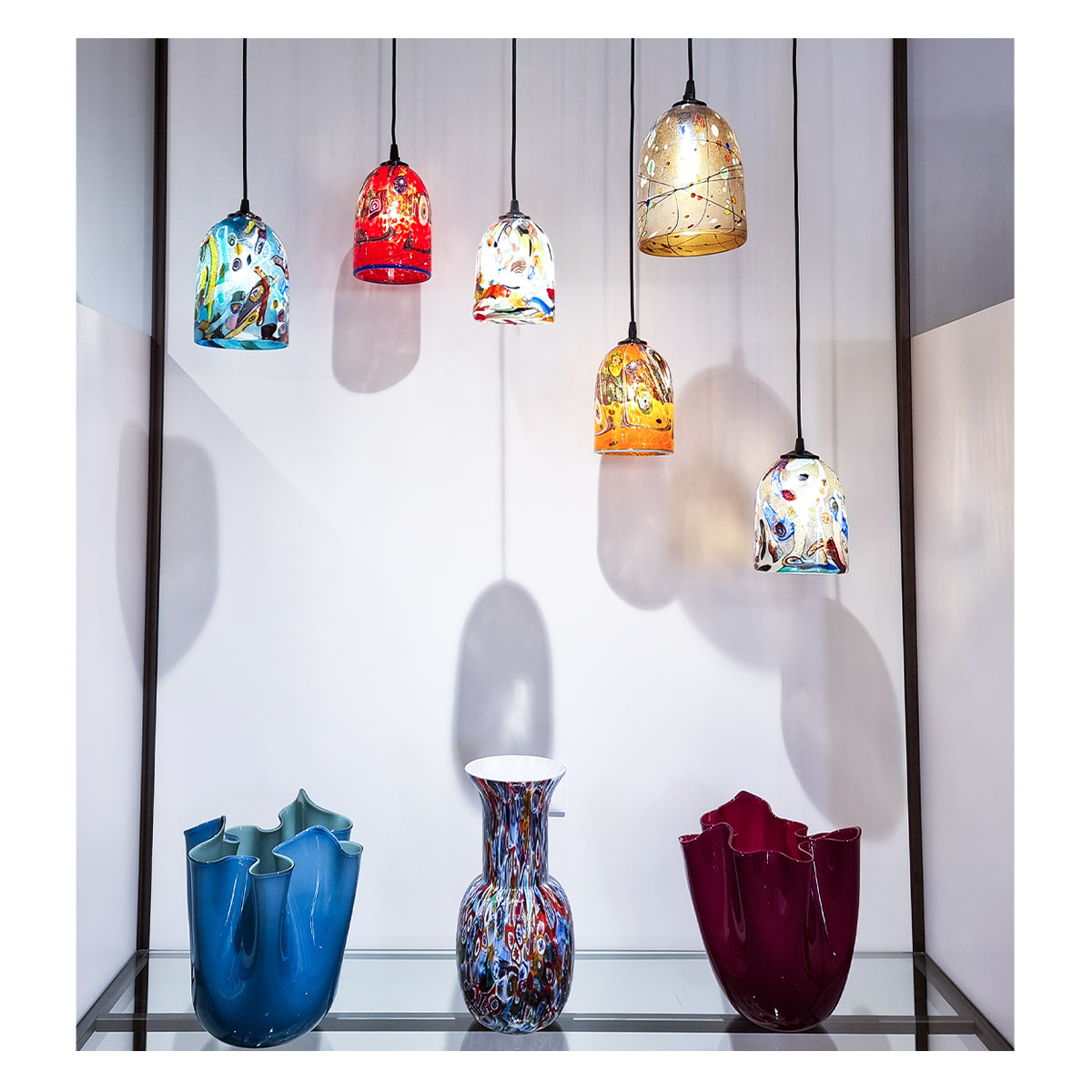 Una particolare tecnica che permette al tempo stesso di modellare raffinate opere d’arte in vetro di Murano ma anche di dare rilievo e risalto alla materia prima ad uno stato semigrezzo.