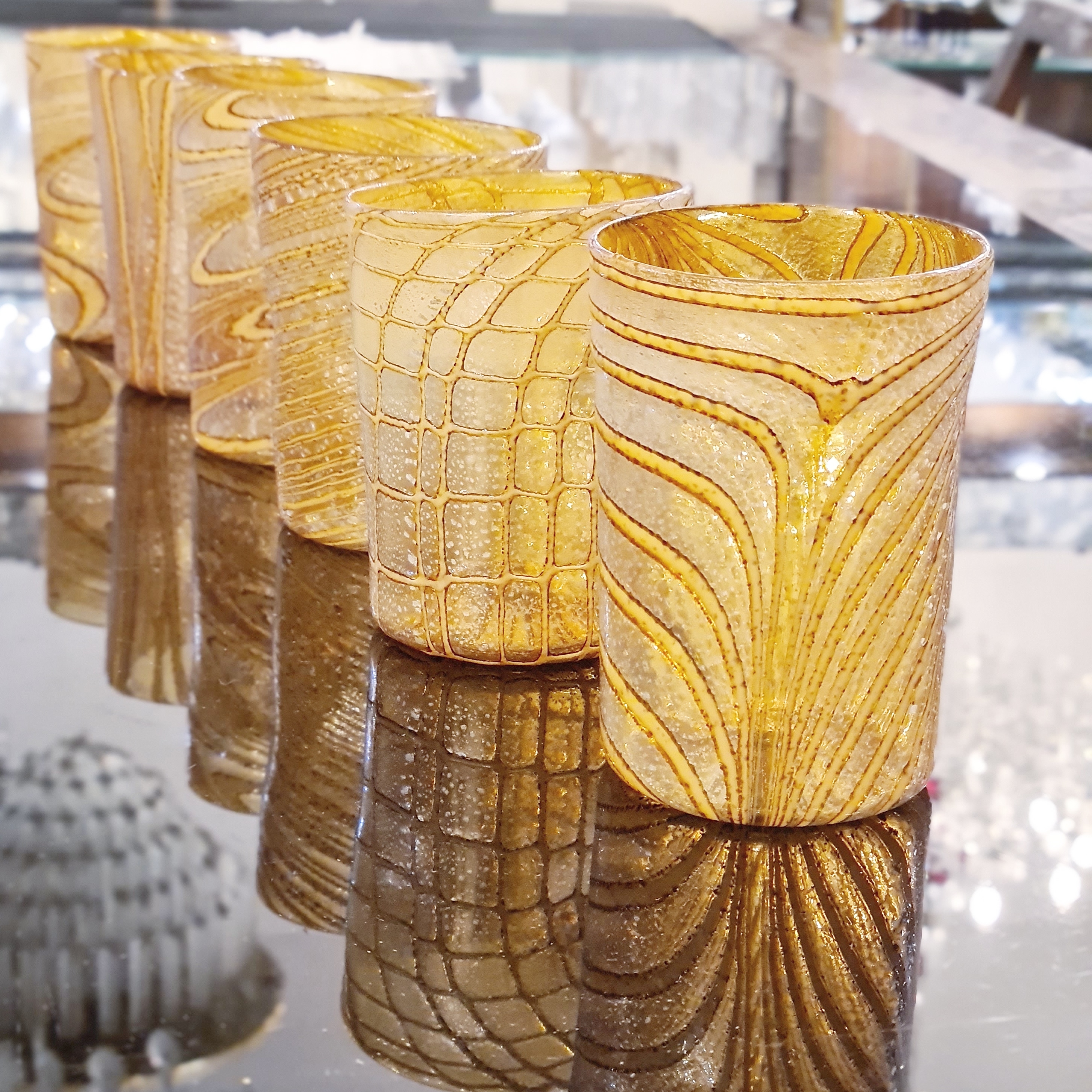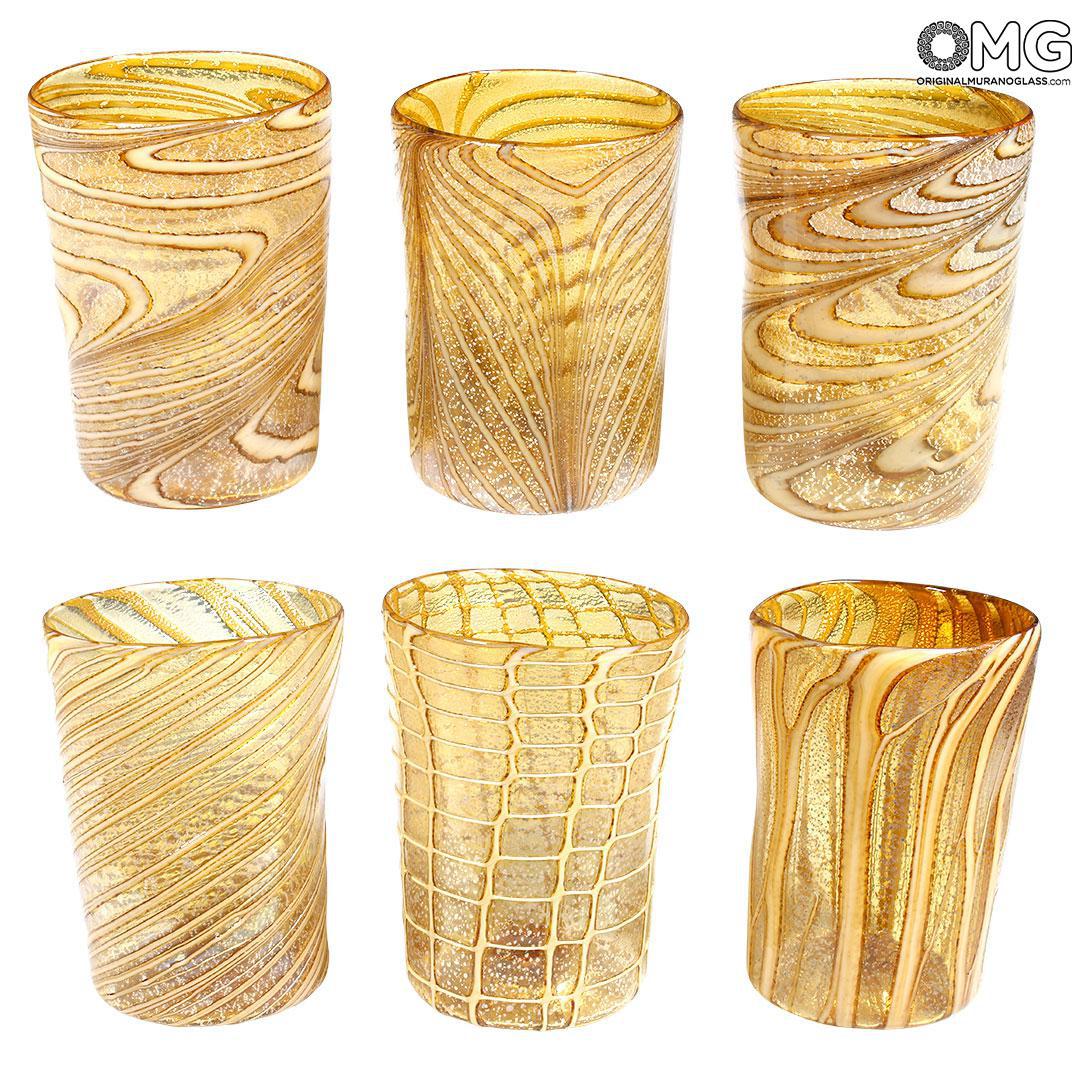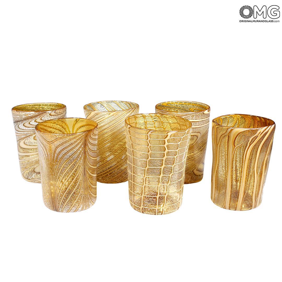 Juego de 6 vasos - Ámbar puro y plata - Cristal de Murano