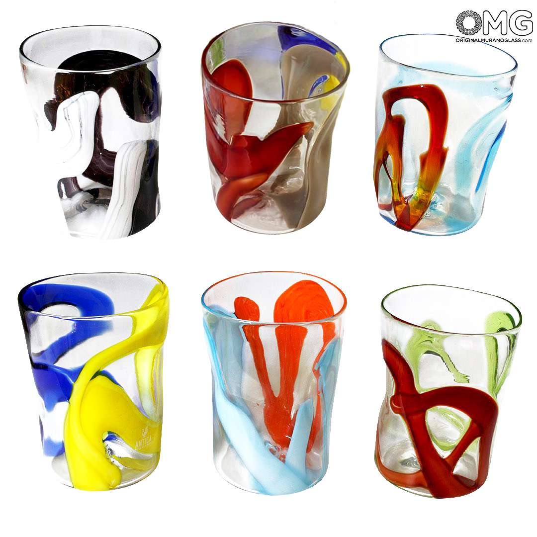 Set di 6 bicchieri completamente soffiati e lavorati a mano da famosi maestri vetrai muranesi.