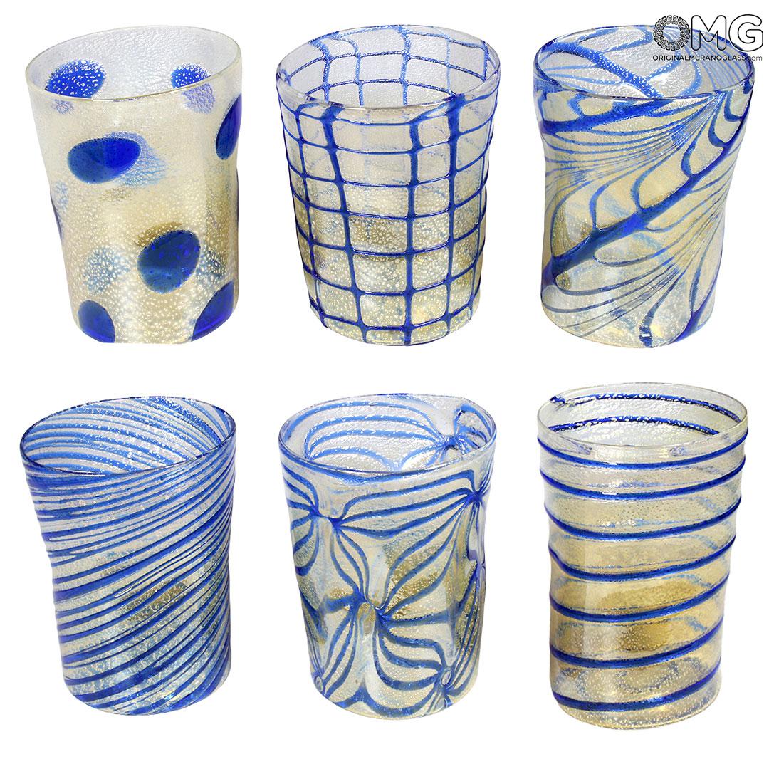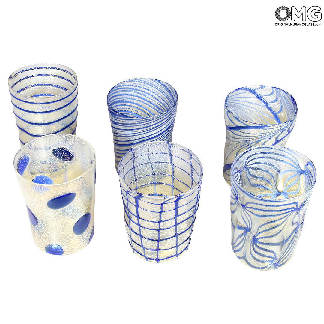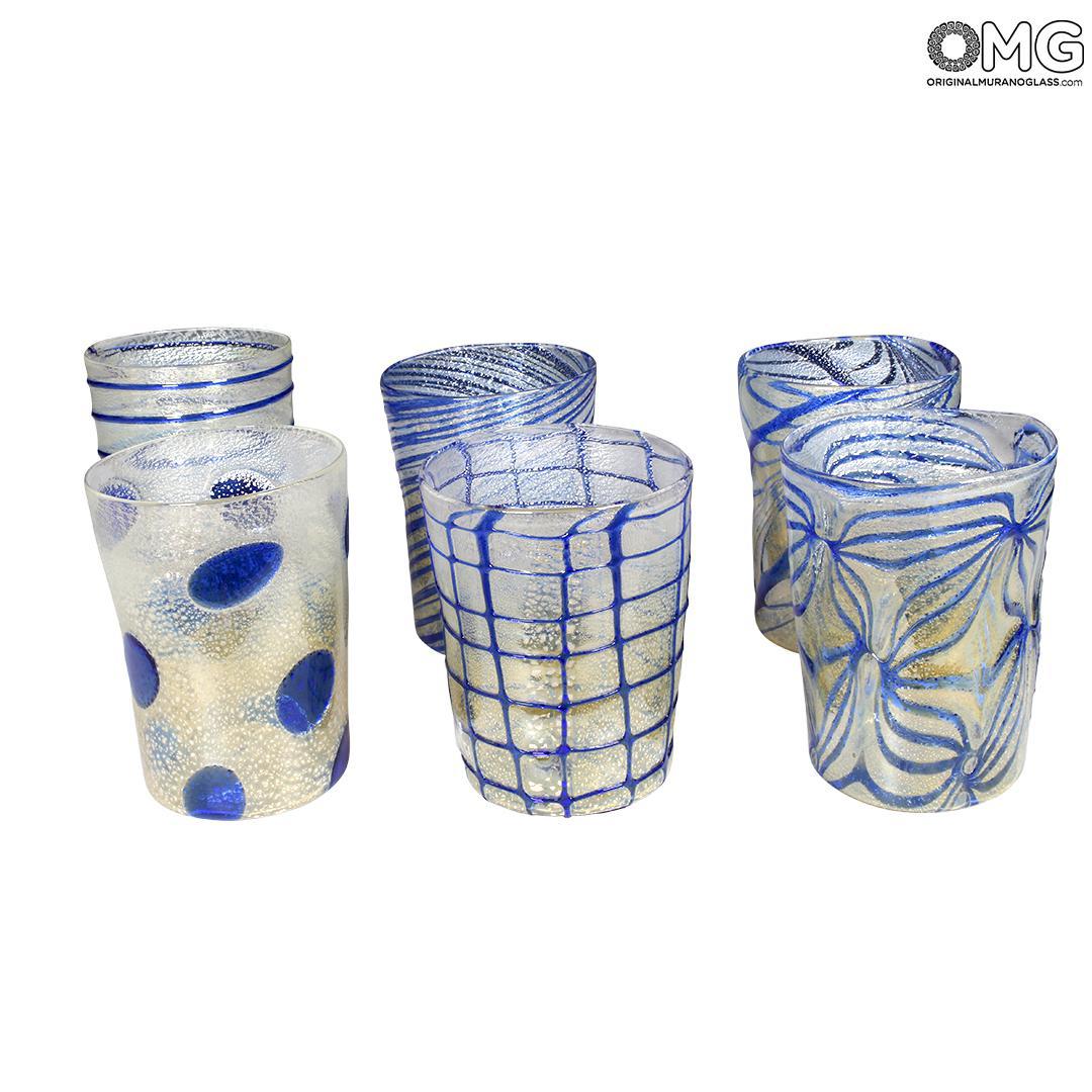 Juego de 6 vasos - Ice - Vidrio de Murano con detalles en plata