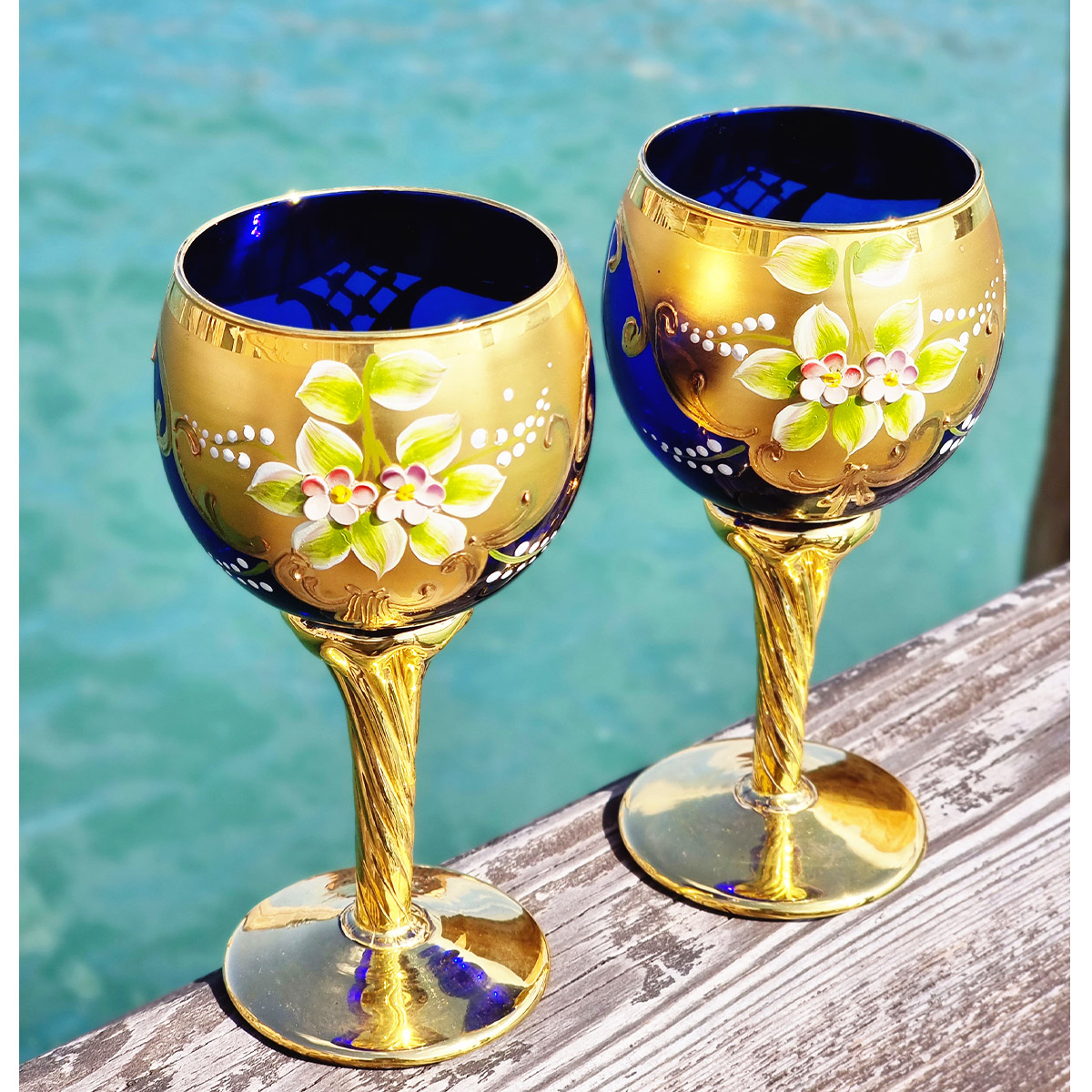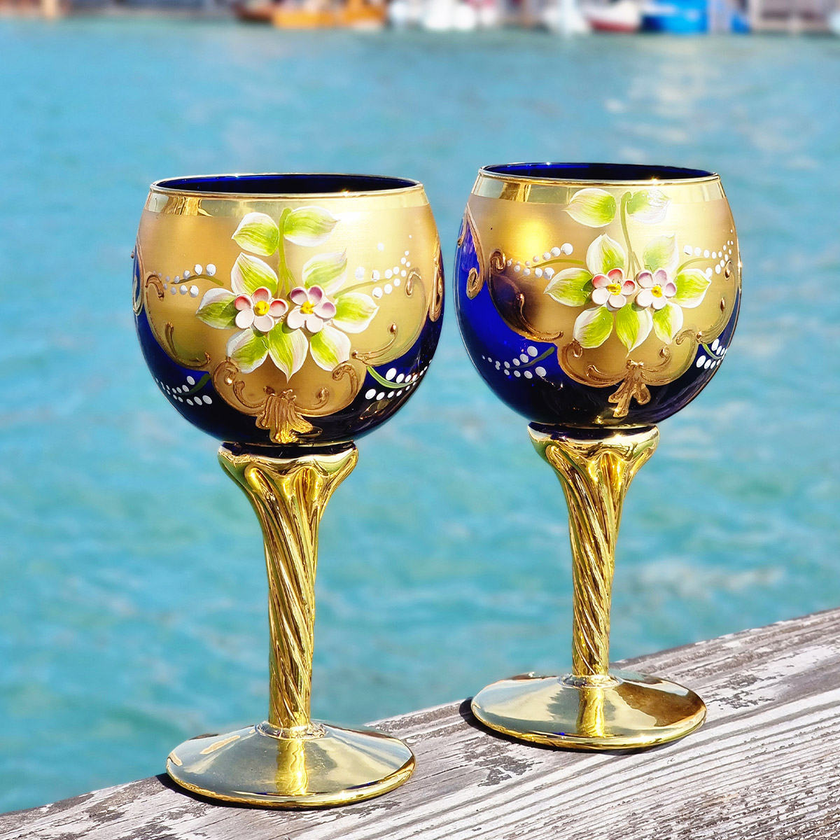 Queste opere di cristalleria di alta qualità sono realizzate una a una a mano, soffiate e finemente dipinte a mano libera dai nostri artigiani con oro e smalti.