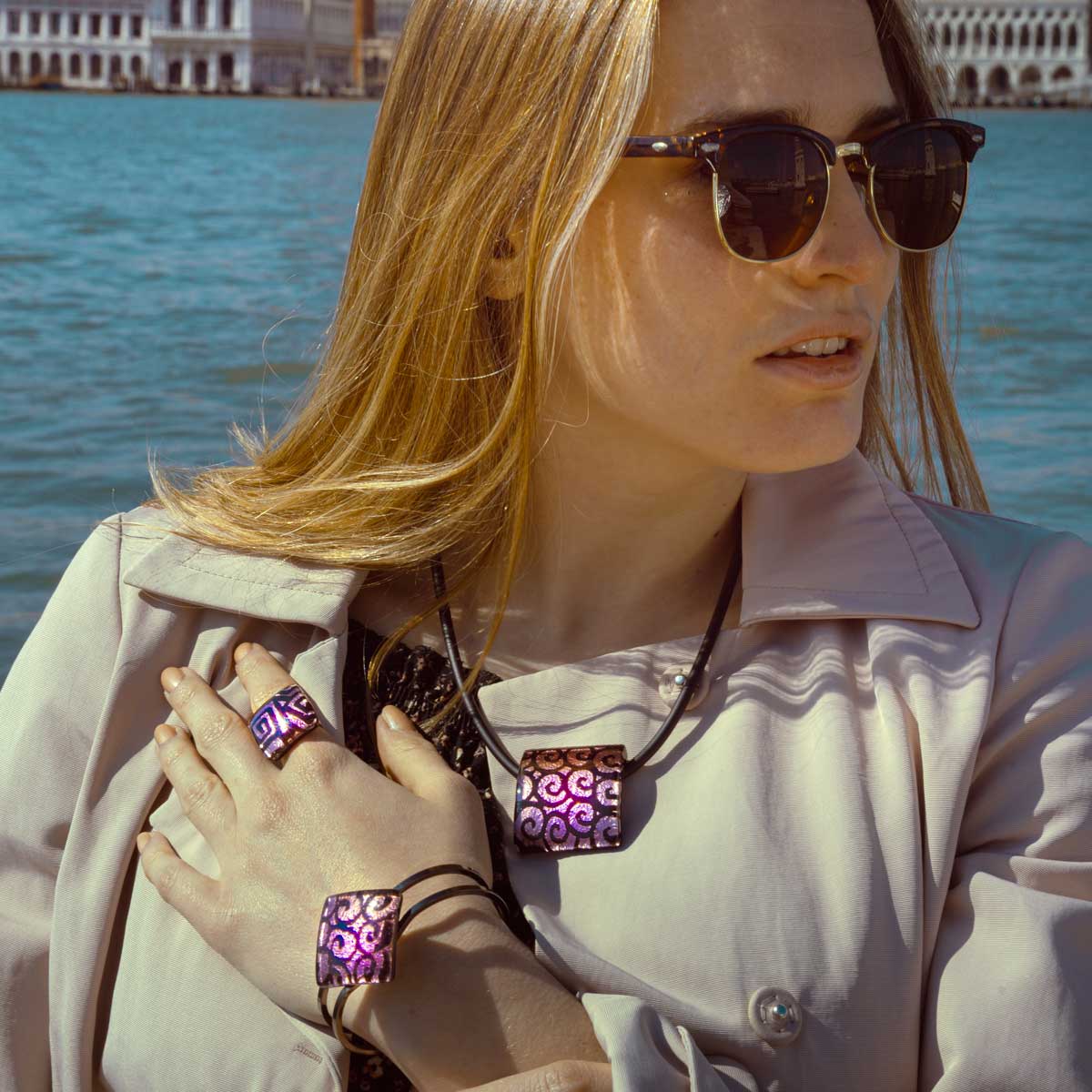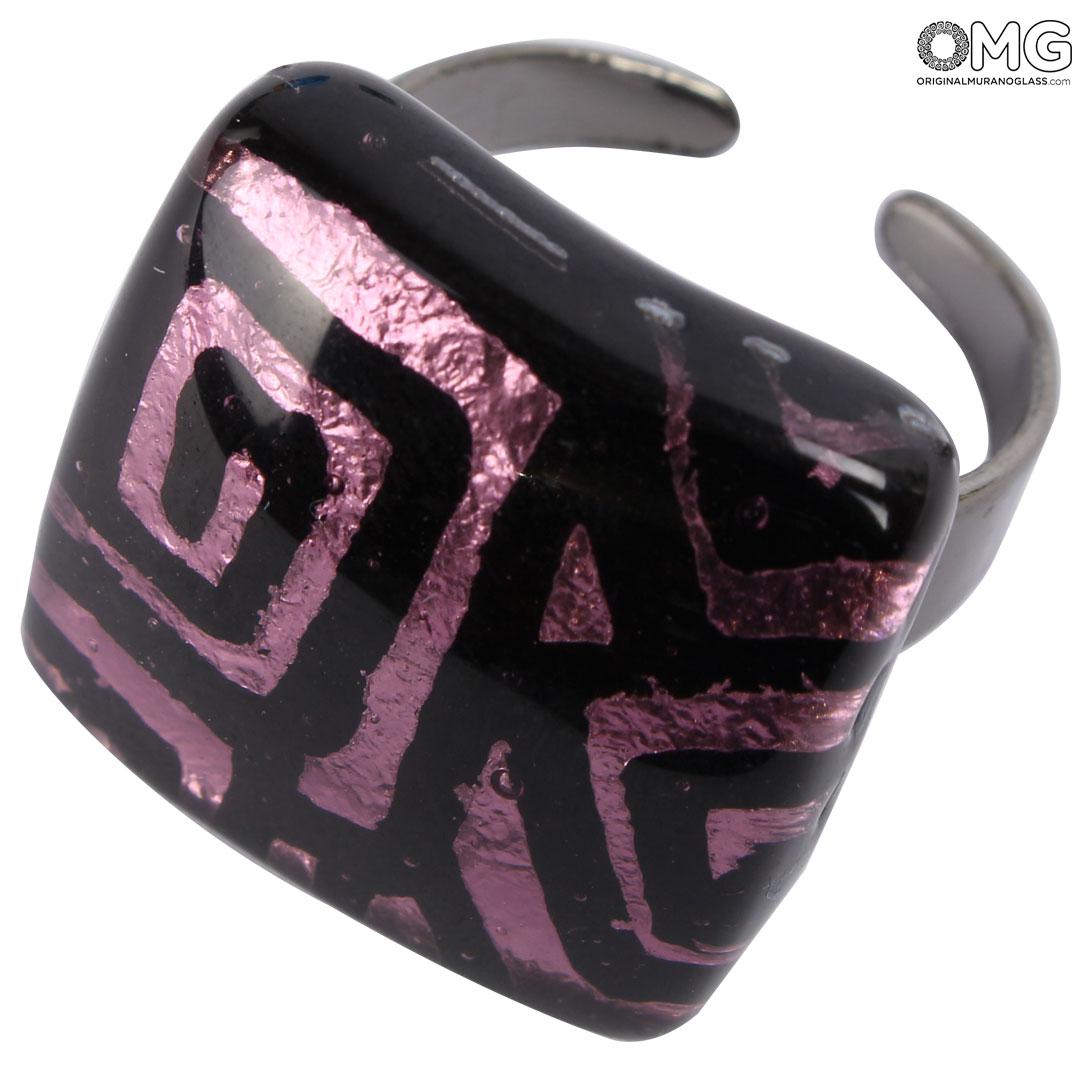 Anello di vetro realizzato con la tecnica della vetrofusione con vera foglia d'argento lavorata a mano.